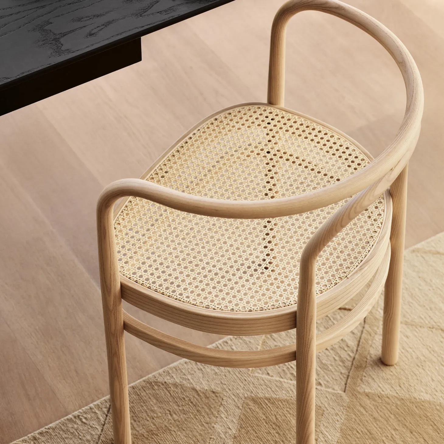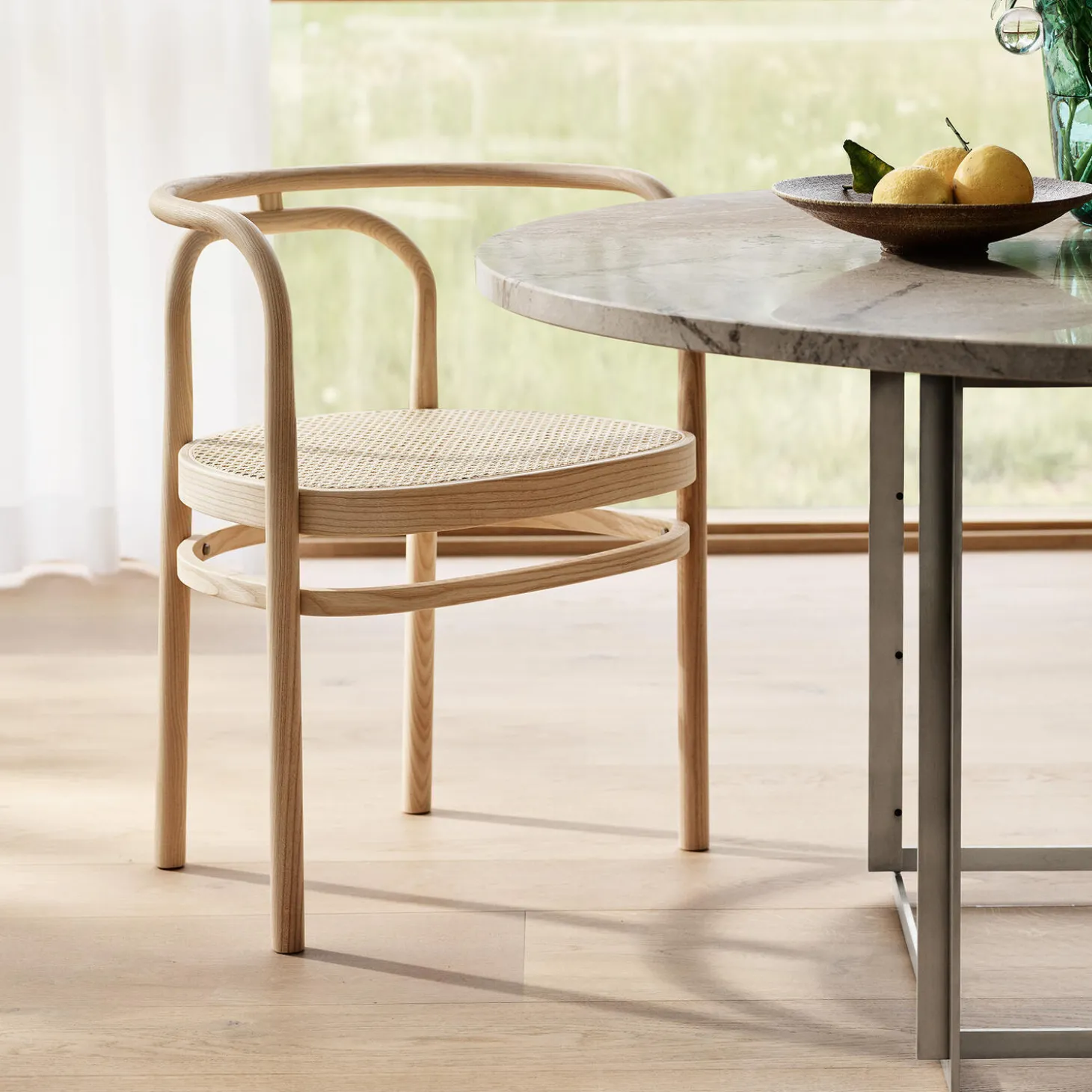 PK15™ stol i lakeret ask med sæde i fransk flet fra Fritz Hansen. Farve: ash. Mål: H: 71,6 x B: 57,5 x D: 47,7 cm. Siddehøjde: 45 cm. Design: Poul Kjærholm.