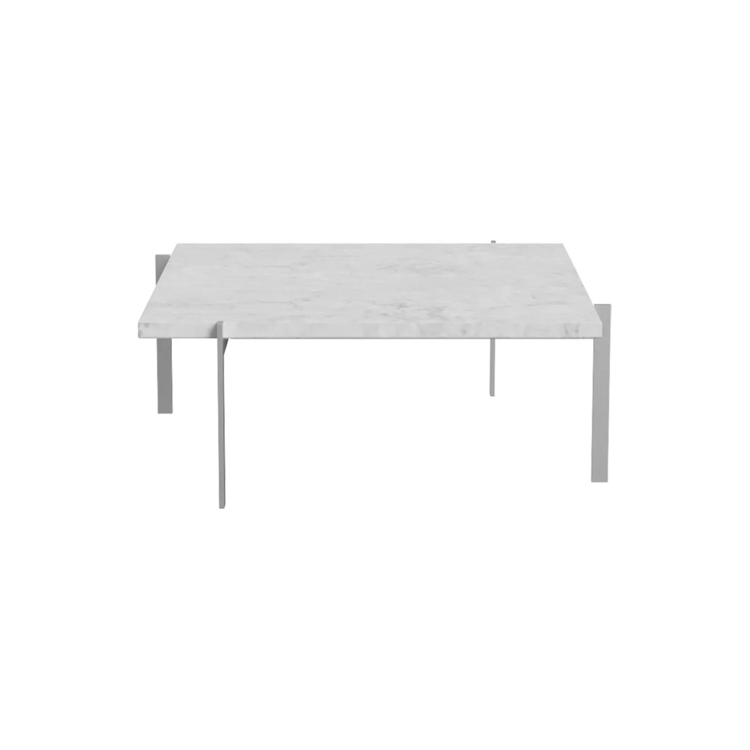 PK61™ sofabord med bordplade i marmor og stel i satinbørstet rustfrit stål fra Fritz Hansen. Farve: hvid. Mål: H: 32 x L: 80 x B: 80 cm. Design: Poul Kjærholm.