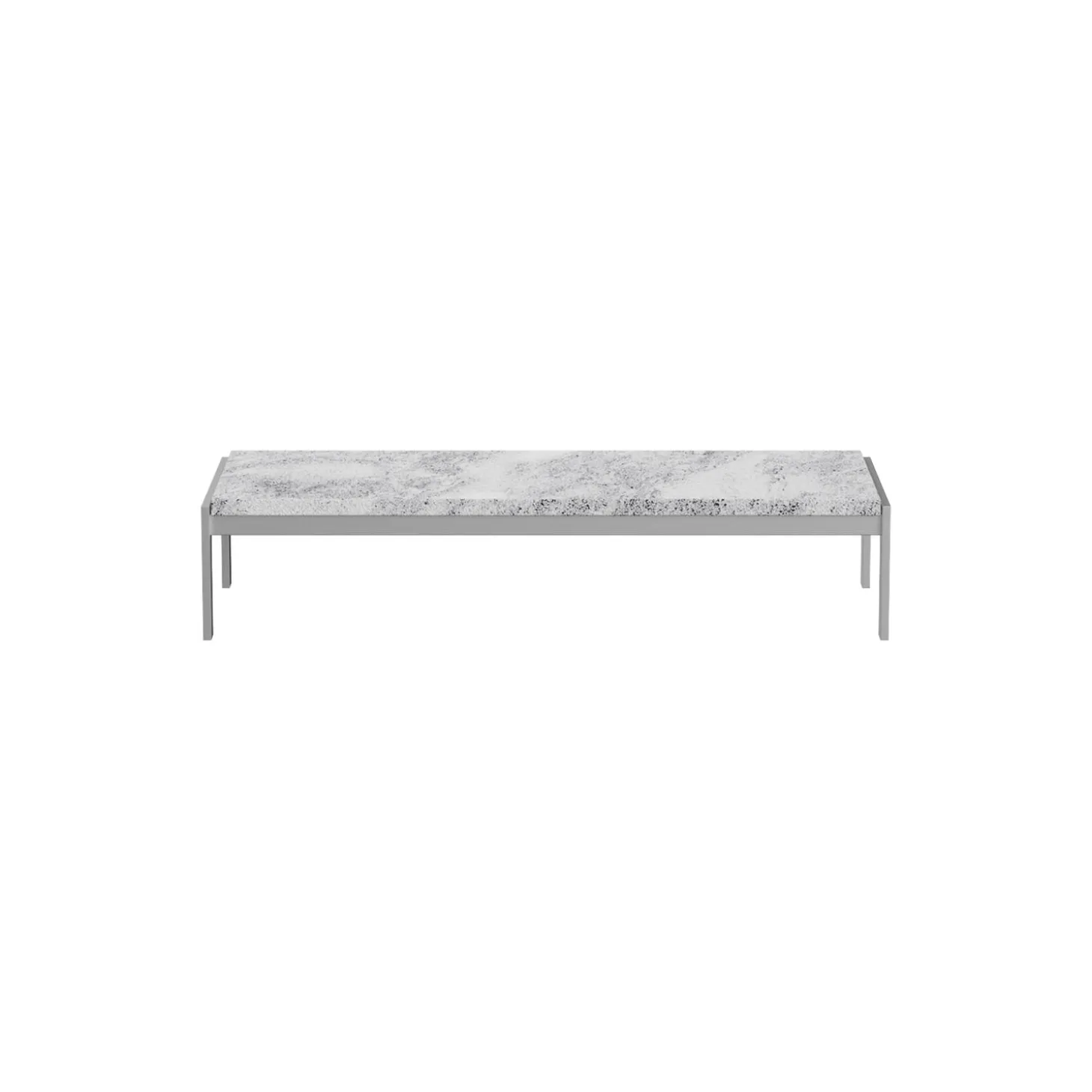 PK62™ sofabord med bordplade i valset marmor og stel i satinbørstet rustfrit stål fra Fritz Hansen. Farve: gråhvid valset. Mål: H: 17 x L: 80 x B: 27 cm. Design: Poul Kjærholm.