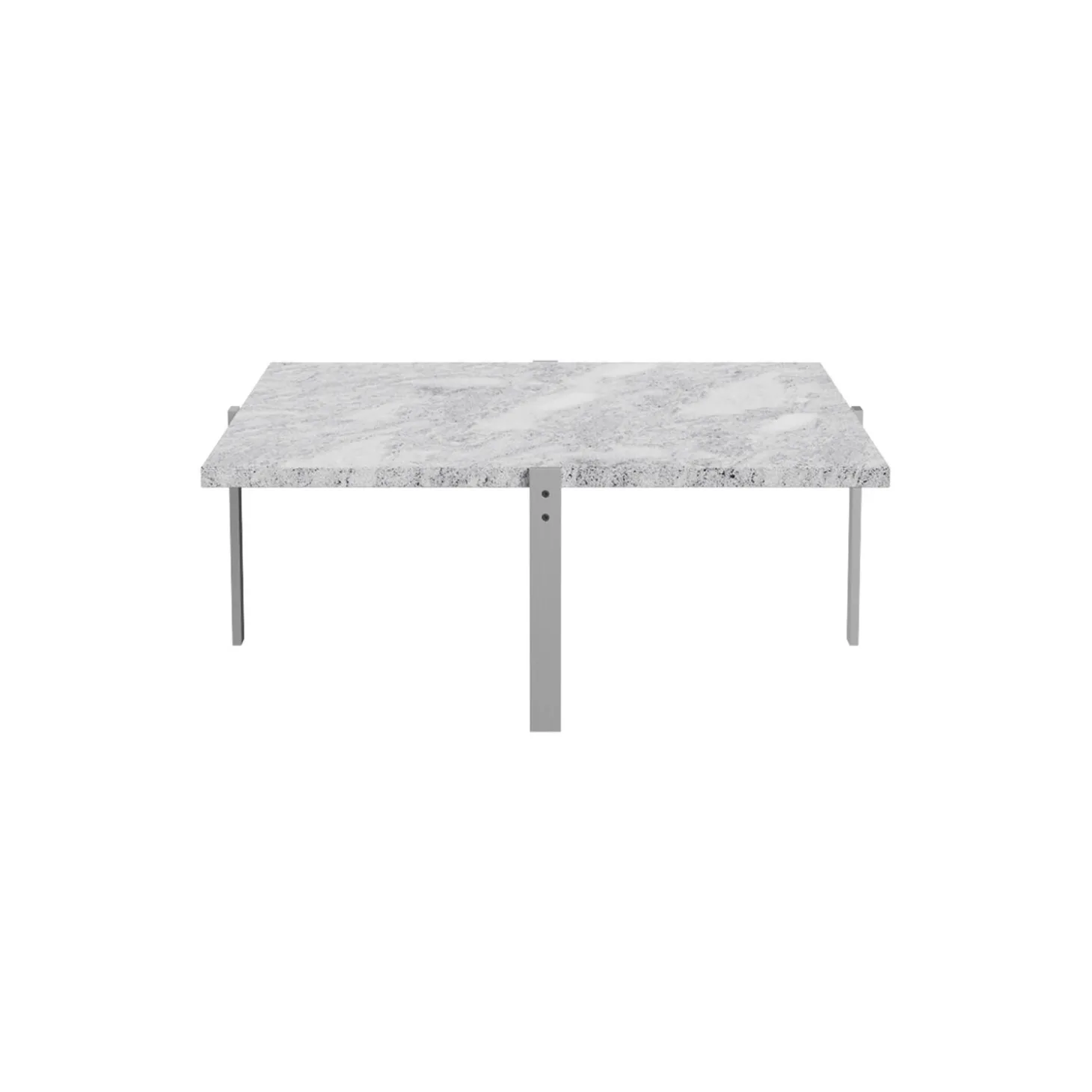 PK65™ sofabord med bordplade i valset marmor og stel i satinbørstet rustfrit stål fra Fritz Hansen. Farve: gråhvid valset. Mål: H: 38 x L: 100 x B: 100 cm. Design: Poul Kjærholm.