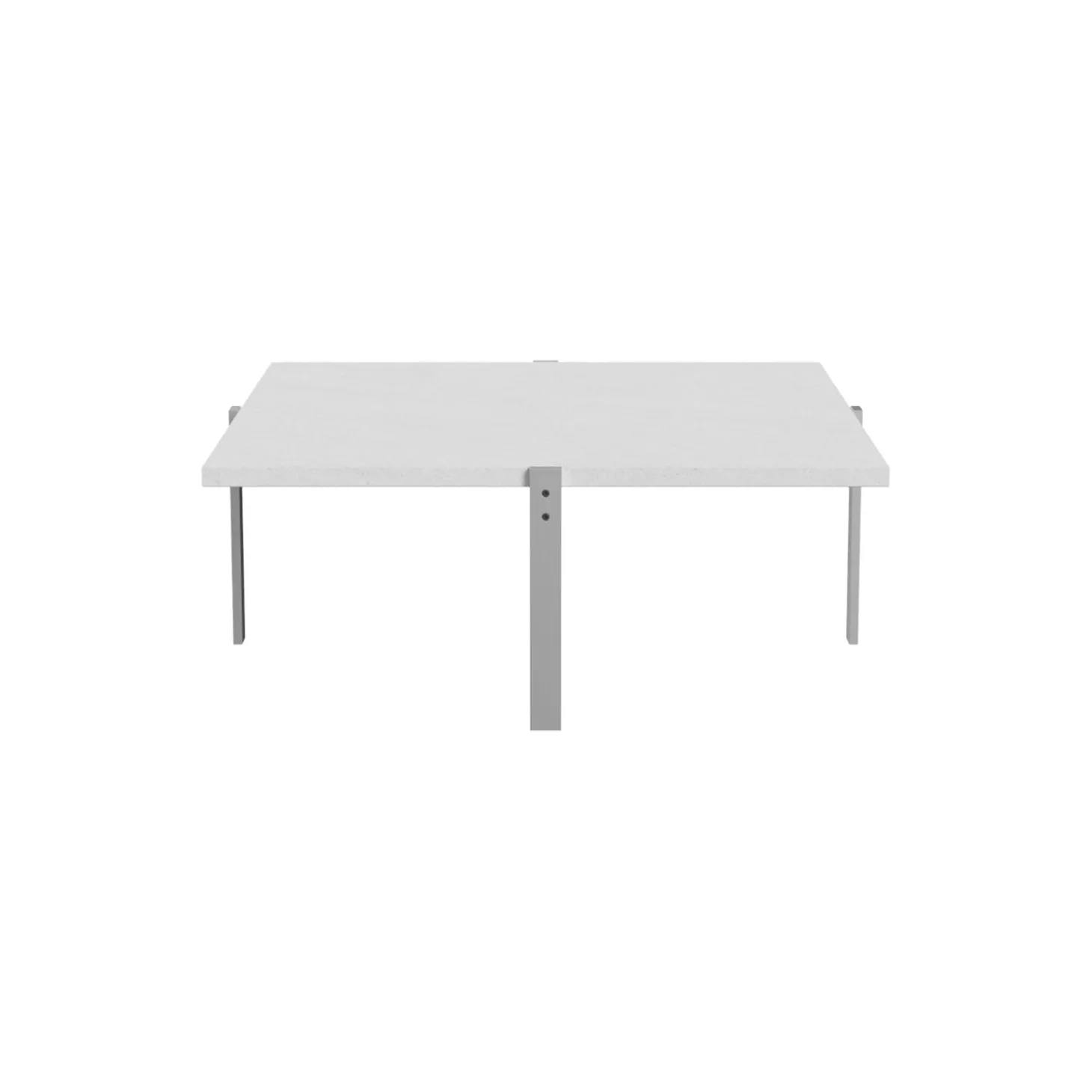 PK65™ sofabord med bordplade i valset marmor og stel i satinbørstet rustfrit stål fra Fritz Hansen. Farve: hvid valset. Mål: H: 38 x L: 100 x B: 100 cm. Design: Poul Kjærholm.