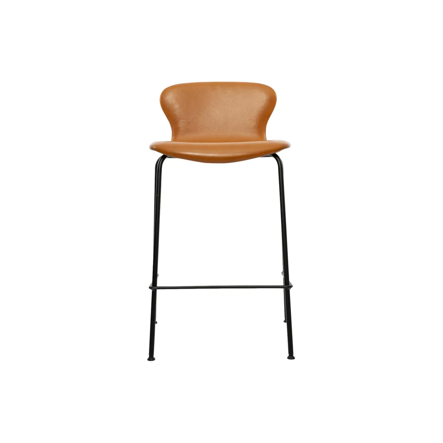 PLAYchair Counter og Bar. Designet af: Bruunmunch og Claus Simonsen. Eksklusiv counter og bar stol i læder. PLAYchair Counter og Bar er en dansk designet barstol, som produceres i kvalitetsmaterialer i to sidde højder 65 cm og 75 cm. Stolen har et let og elegant udtryk som passer perfekt ind i den nordiske stil. Stolen er polstret af dygtige håndværker der nøje udvælger og håndskærer læderet, som anvendes til polstring af stolen. Skallen består af 12 mm forspændt FSC certificeret bøgefinér, polstret med 20 mm Oeko-Tex certificeret koldskum, som giver en fantastisk god siddekomfort. Stolen er betrukket med Oeko-Tex certificeret beskyttet læder, som har en glat, poleret overflade med en subtil fintrykt tekstur. Læderet er vandafvisende, smudsafvisende, pletafvisende, holdbar og nem at vedligeholde. Stellet er fremstillet af 16 mm pulverlakeret stål. Stellet er stabelbart, vi anbefaler ikke at de fuldpolstrede stole stables i længere perioder da det kan give mærker i polstringen. Den konturskårede polstrede finerskal giver stolen et tidløst og moderne udtryk. Den lave ryg giver en god støtte i ryggen og en ekstra god siddekomfort. Stolen passer godt til køkken øen i det moderne samtalekøkken, og vil også passe godt ind på restauranter, hoteller og cafeer. Fodstøtten på stellet gør det muligt at hvile benene, så man sidder behageligt i timevis mens der nydes en drink, laves mad, eller laves lektier med børnene ved køkkenøen. PLAYchair er produceret, i FSC certificeret bøgefiner og Oeko-Tex certificeret koldskum og læder. PLAYchair pakkes to stole i hver kasse for at optimere fragten mest muligt. Emballagen består selvfølgelig af FSC certificeret pap.
