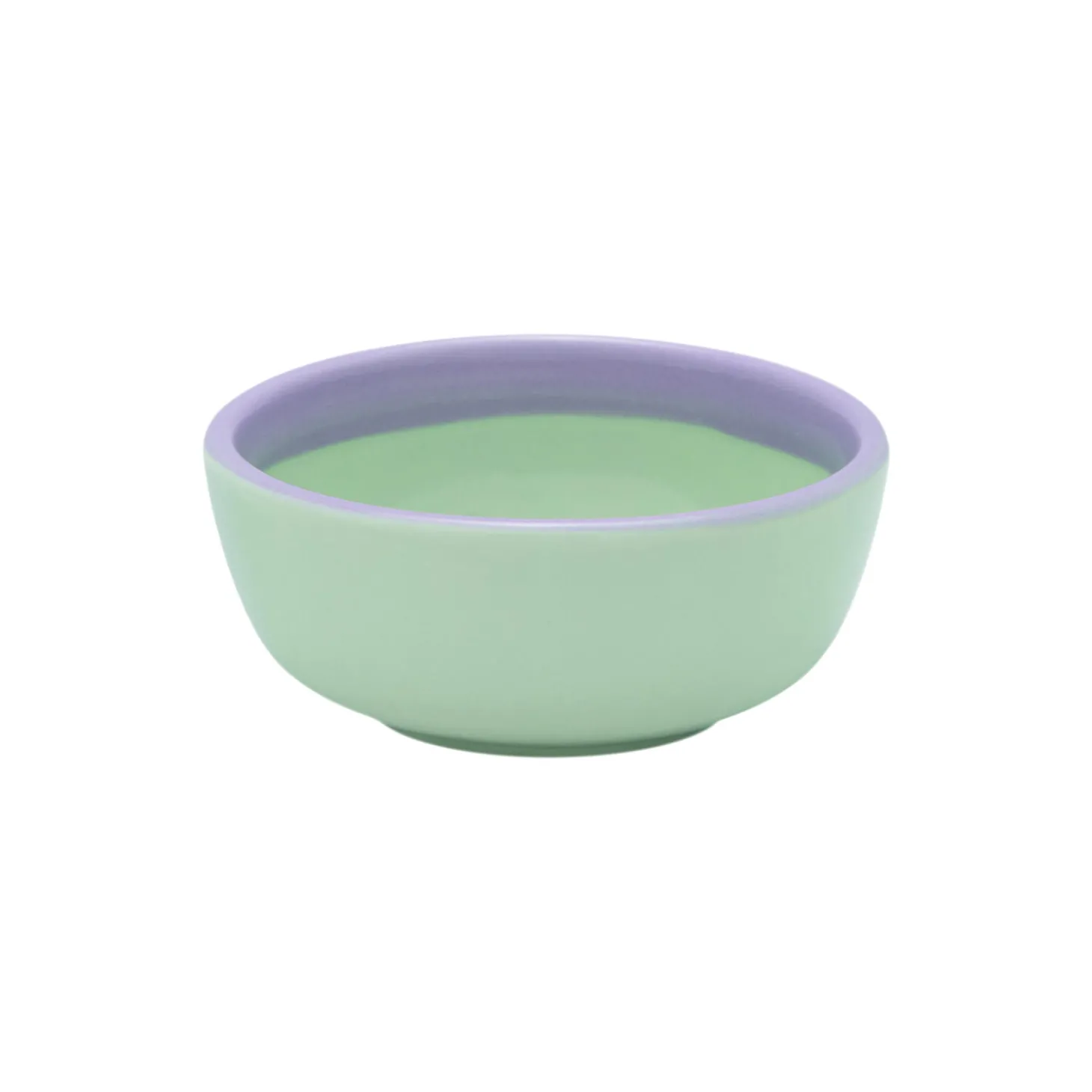 Den mintlilla Play-skål er en frisk, munter og flot skål, der er designet til at gøre livet mere legende. Den lille Play-skål har sin plads, uanset om du serverer dips, dækker op til sushi og soja eller har den perfekte natmad. Skålen fungerer også som et dekorativt element, når man tager en pause fra at være det pyntede centrum i borddækningen – den funktionelle skål holder styr på småtingene. Hvert produkt gennemgår flere faser og flere hænder. Den smukke kontrastfarvede lilla kant på skålen er håndmalet og giver skålen et smukt håndværksmæssigt look. Play er en kollektion af ting til hjemmet, som er nemme at mikse og matche. Det er funktionelle ting, som man kan lege med i borddækningen og indretningen. De varme farver, der gløder i solen, og Matisses udklipskunst har inspireret til kollektionen. Kollektionen fokuserer på kunsthåndværk, materialeudtryk, dristige farvekombinationer og en legende blanding af former.