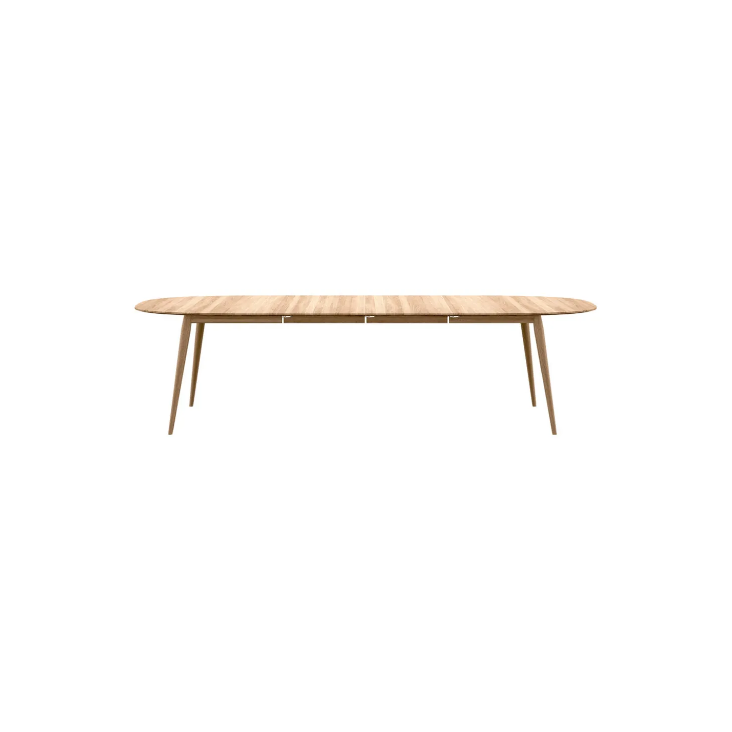 PLAYdinner Lamé Udtræksbord. Designet af: Henrik Bruun og Jacob Munch. Superelipse formet spisebord med udtræk. PLAYdinner Lamé er formgivet ud fra en geometrisk formel opfundet af den Franske Fysiker og Matematiker Gabriel Lamé. Formlen anvendes til at beregne de ellipseformede kurver der udgør bordpladens form, en form også kendt som en superellipse. Den specielle form på PLAYdinner Lamé, der ligger mellem formen af et rektangulært og et rundt bord, er med til at skabe en utrolig hyggelig og social atmosfære og er med til at samle alle omkring sig på samme måde, som det ellers kun er muligt med et rundt spisebord. PLAYdinner Lamé er håndlavet i Danmark med gennemgående, massive træstave, træstavene er sorteret, så pladerne fremstår smukke og harmoniske med fine åretegninger. Samlingerne på vores udtræksborde er lavet meget præcise, dette får samlingerne til at virke næsten usynlige, dette er en af nøgle detaljerne i dette design. Det klassiske tidløse design i massivt træ sikrer, at dette bord passer til næsten alle klassiske stole på markedet. Massivt træ bruges, fordi det er slidstærkt, og også fordi det giver en visuel oplevelse og tilføjer en naturlig varme til din indretning. Bordet kan forlænges med op til to tillægsplader som nemt kan tilføjes, hvilket forlænger bordet fra 180 cm. til 230 cm. eller i alt 280 cm. Med plads til op til 10 (12) personer. Bordet kan bruges som spisebord i hjemmet, på restauranter eller cafeer eller som mødebord i designbevidste virksomheder. PLAYdinner bordene er produceret på en møbelfabrik i Danmark, i FSC certificeret egetræ og valnød. PLAYdinner bordene pakkes flat pack for at spare på CO2-udledningen under transporten. Emballagen består også af FSC certificeret pap.