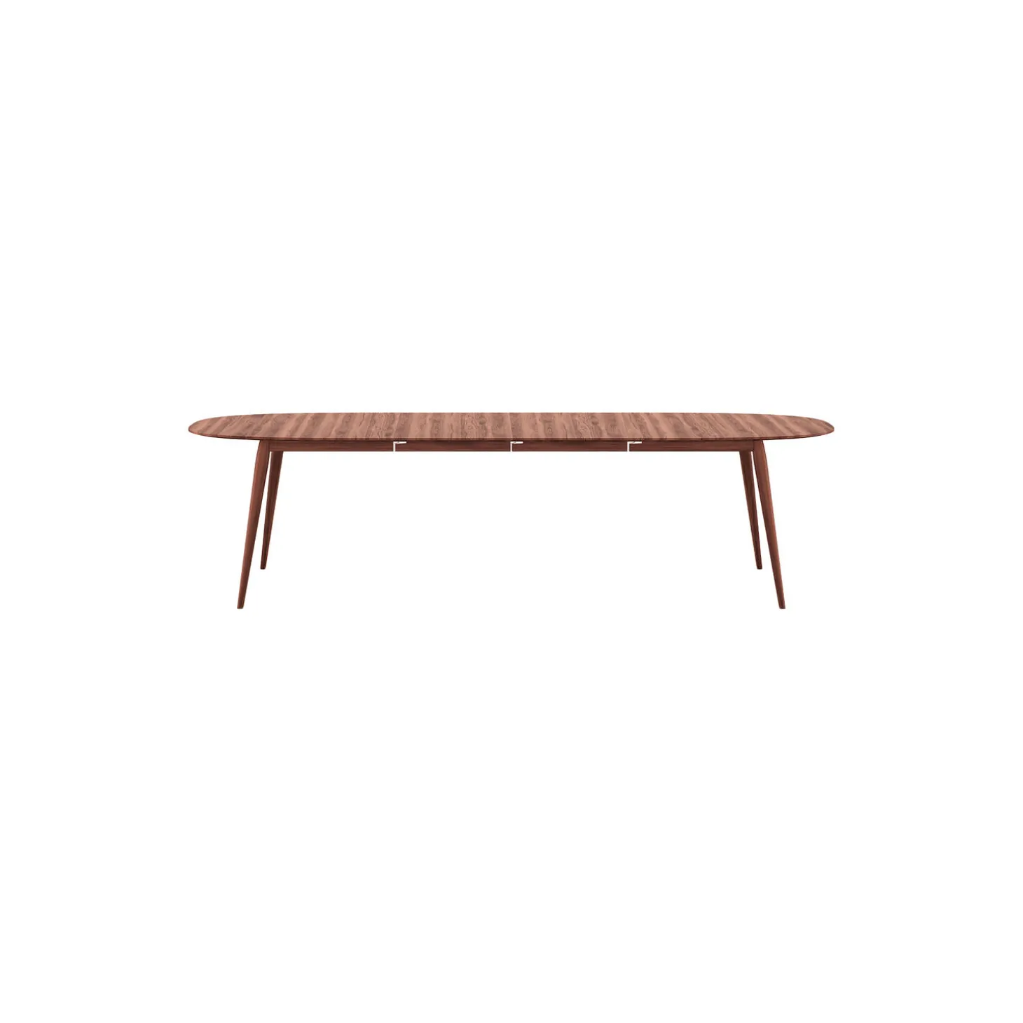PLAYdinner Lamé Udtræksbord. Designet af: Henrik Bruun og Jacob Munch. Superelipse formet spisebord med udtræk. PLAYdinner Lamé er formgivet ud fra en geometrisk formel opfundet af den Franske Fysiker og Matematiker Gabriel Lamé. Formlen anvendes til at beregne de ellipseformede kurver der udgør bordpladens form, en form også kendt som en superellipse. Den specielle form på PLAYdinner Lamé, der ligger mellem formen af et rektangulært og et rundt bord, er med til at skabe en utrolig hyggelig og social atmosfære og er med til at samle alle omkring sig på samme måde, som det ellers kun er muligt med et rundt spisebord. PLAYdinner Lamé er håndlavet i Danmark med gennemgående, massive træstave, træstavene er sorteret, så pladerne fremstår smukke og harmoniske med fine åretegninger. Samlingerne på vores udtræksborde er lavet meget præcise, dette får samlingerne til at virke næsten usynlige, dette er en af nøgle detaljerne i dette design. Det klassiske tidløse design i massivt træ sikrer, at dette bord passer til næsten alle klassiske stole på markedet. Massivt træ bruges, fordi det er slidstærkt, og også fordi det giver en visuel oplevelse og tilføjer en naturlig varme til din indretning. Bordet kan forlænges med op til to tillægsplader som nemt kan tilføjes, hvilket forlænger bordet fra 180 cm. til 230 cm. eller i alt 280 cm. Med plads til op til 10 (12) personer. Bordet kan bruges som spisebord i hjemmet, på restauranter eller cafeer eller som mødebord i designbevidste virksomheder. PLAYdinner bordene er produceret på en møbelfabrik i Danmark, i FSC certificeret egetræ og valnød. PLAYdinner bordene pakkes flat pack for at spare på CO2-udledningen under transporten. Emballagen består også af FSC certificeret pap.
