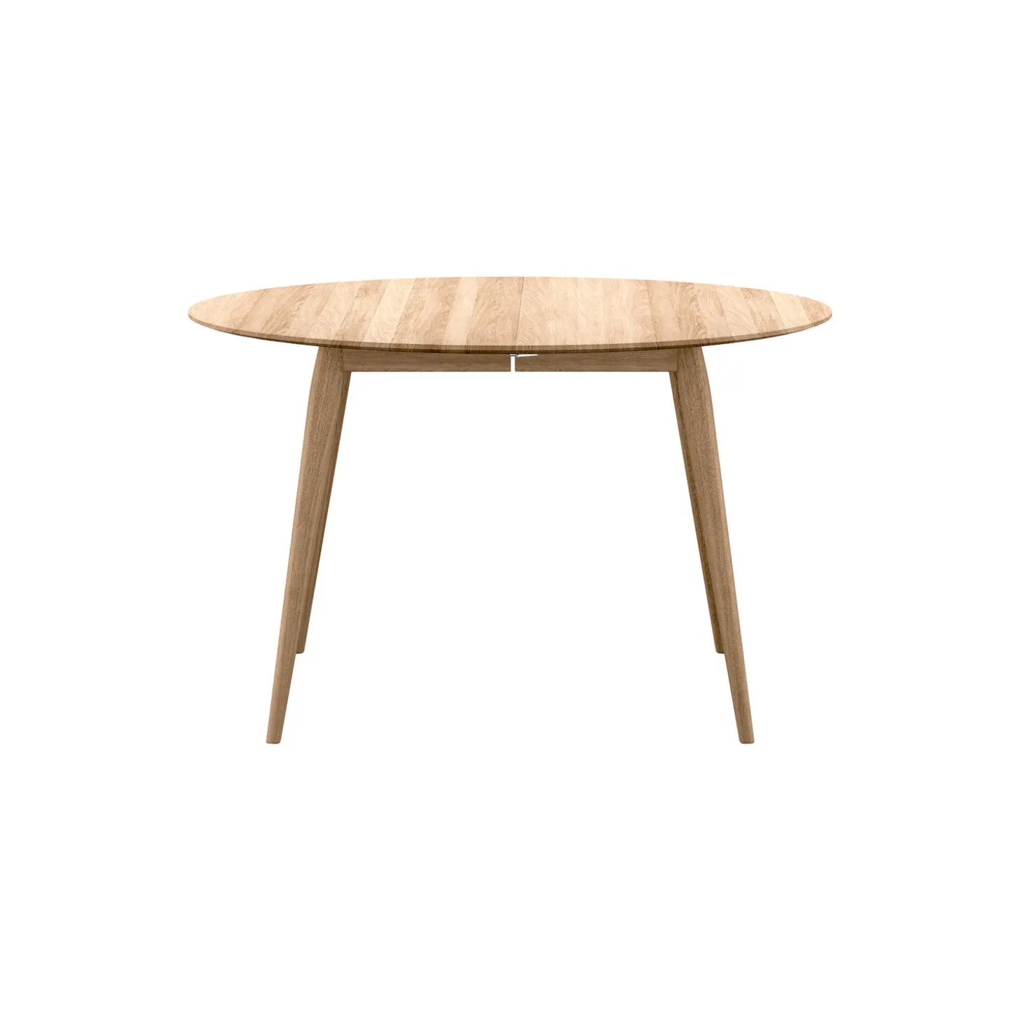 PLAYdinner Round Ø120 Udtræksbord. Designet af: Henrik Bruun og Jacob Munch. Rundt spisebord med udtræk. PLAYdinner Round med udtræk er perfekt til kunden der er på udkig efter et rundt spisebord. Et rundt bord kan være optimalt til indretningen, hvor spisebordet skal stå i centrum af et større rum eller for at udnytte pladsen i et mindre. Der er noget utrolig hyggeligt og socialt over et rundt bord, som samler alle omkring sig på en anden måde, end det er muligt med andre spiseborde. Spisebordet er håndlavet i Danmark med gennemgående, massive træstave, træ stavene er sorteret, så bordpladerne fremstår smukke og harmoniske med fine åretegninger. Udtræks bordet kan udvides med op til to tillægsplader. Samlingerne på vores udtræksborde er lavet meget præcise, hvilket får samlingerne til at virke næsten usynlige, dette er en af nøgle detaljerne i dette design. Det klassiske tidløse design i massivt træ sikrer, at dette bord passer til næsten alle klassiske stole på markedet. Spisebordet er produceret i massiv træ, fordi det er slidstærkt, og også fordi det giver en visuel oplevelse og tilføjer en naturlig varme til din indretning. Bordet kan forlænges med op til to tillægsplader, som nemt kan isættes, så bordet forlænges fra 120 cm. til 170 cm. eller i alt 220 cm. hvilket giver plads til op til 8/(10) personer. Bordet kan bruges som spisebord i hjemmet, på restauranter eller cafeer eller som mødebord i designbevidste virksomheder. PLAYdinner bordene er produceret på en møbelfabrik i Danmark, i FSC certificeret egetræ og valnød. PLAYdinner bordene pakkes flat pack for at spare på CO2-udledningen under transporten. Emballagen består også af FSC certificeret pap.