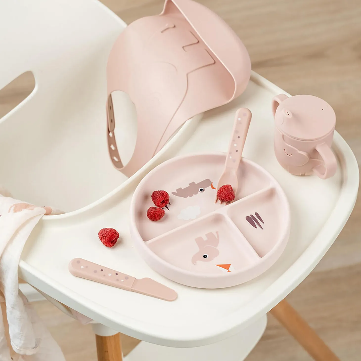 • En praktisk base med sugekop forhindrer dit barn i at skubbe, vippe eller kaste den opdelte tallerken• Fremstillet af fødevaregodkendt silikone, fri for BPA og andre skadelige stoffer• Sikker til brug i mikroovn, ovn og fryser• Tåler opvaskemaskine, vi anbefaler brug af parfumefri sæbe til silikone• Materialet er stærkt og langtidsholdbart• Sød pudderfarve med et underholdende motiv af Elphee og Croco• Lad en Deer friend inspirere dit barn til at udforske madens verden