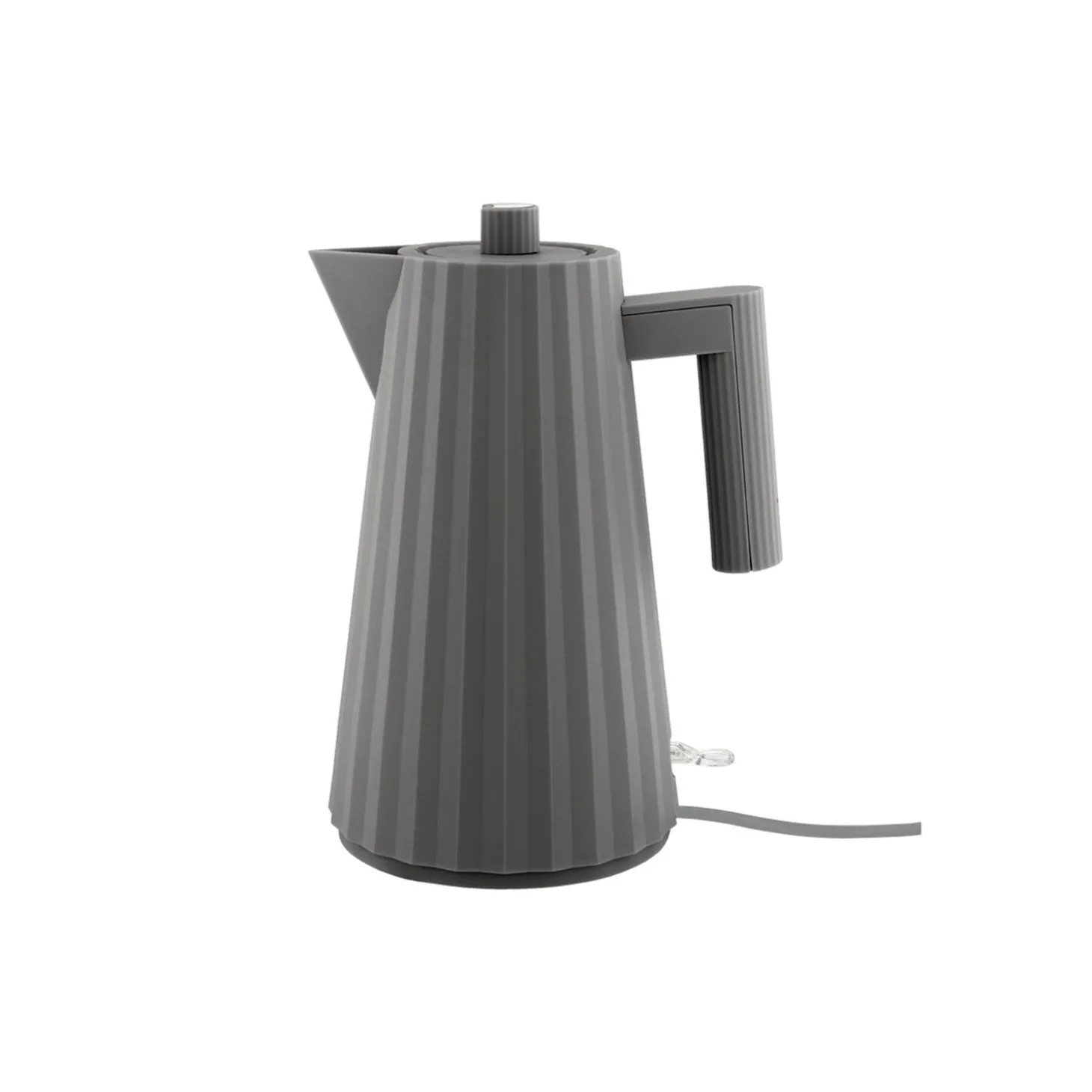 Plissé elkedel i termoplastisk harpiks fra Alessi. Farve: grå. Mål: Ø 21 cm. Indeholder: 170 cl. Design: Michele De Lucchi.
