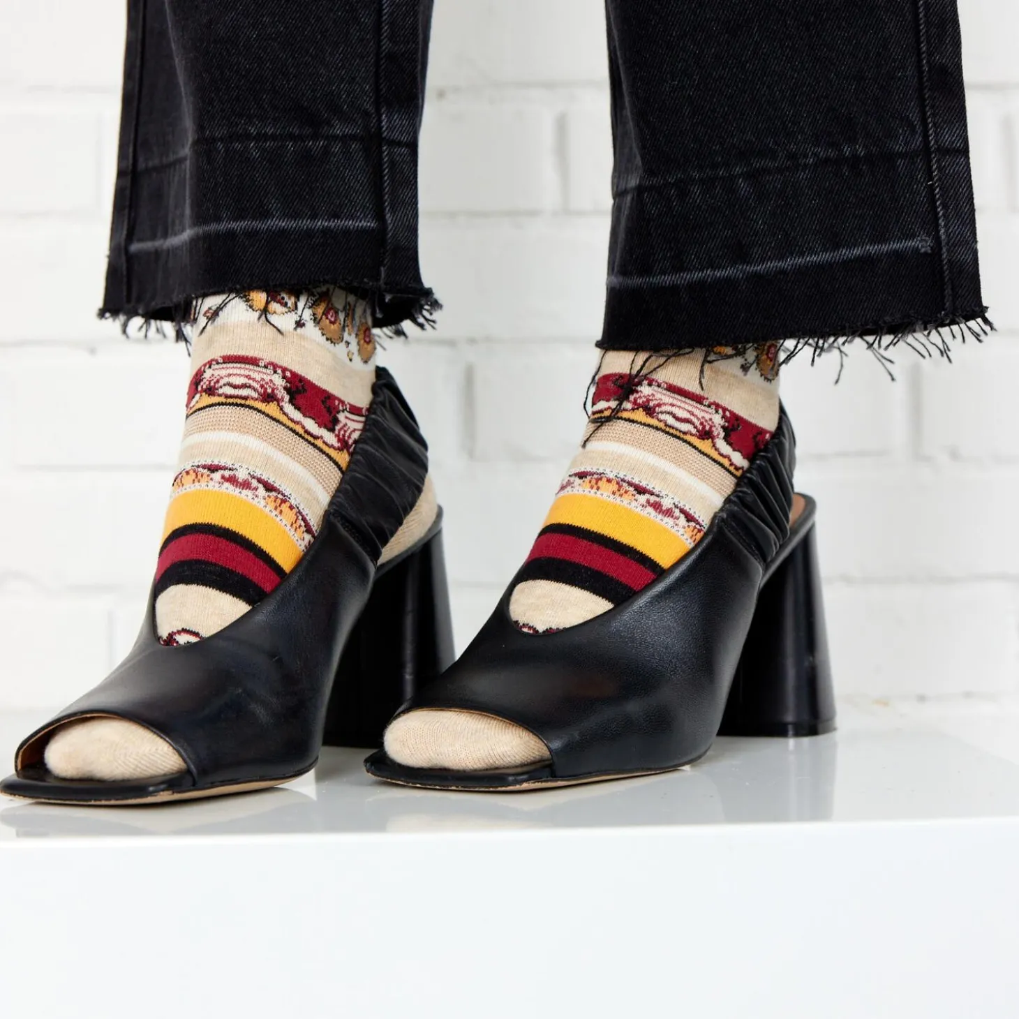 Strømper i en blød og komfortabel bomuldskvalitet med stribet brokade mønster. Økotex certifticeret.