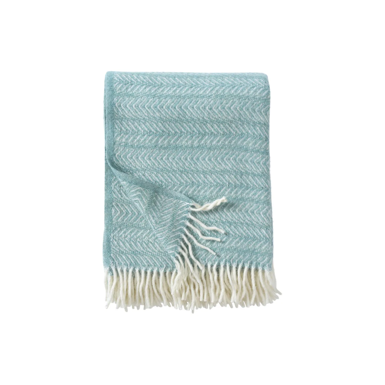 Point plaid i 75% lammeuld og 25% genanvendt uld fra Klippan Yllefabrik. Farve: turquoise. Mål: 130×200 cm.