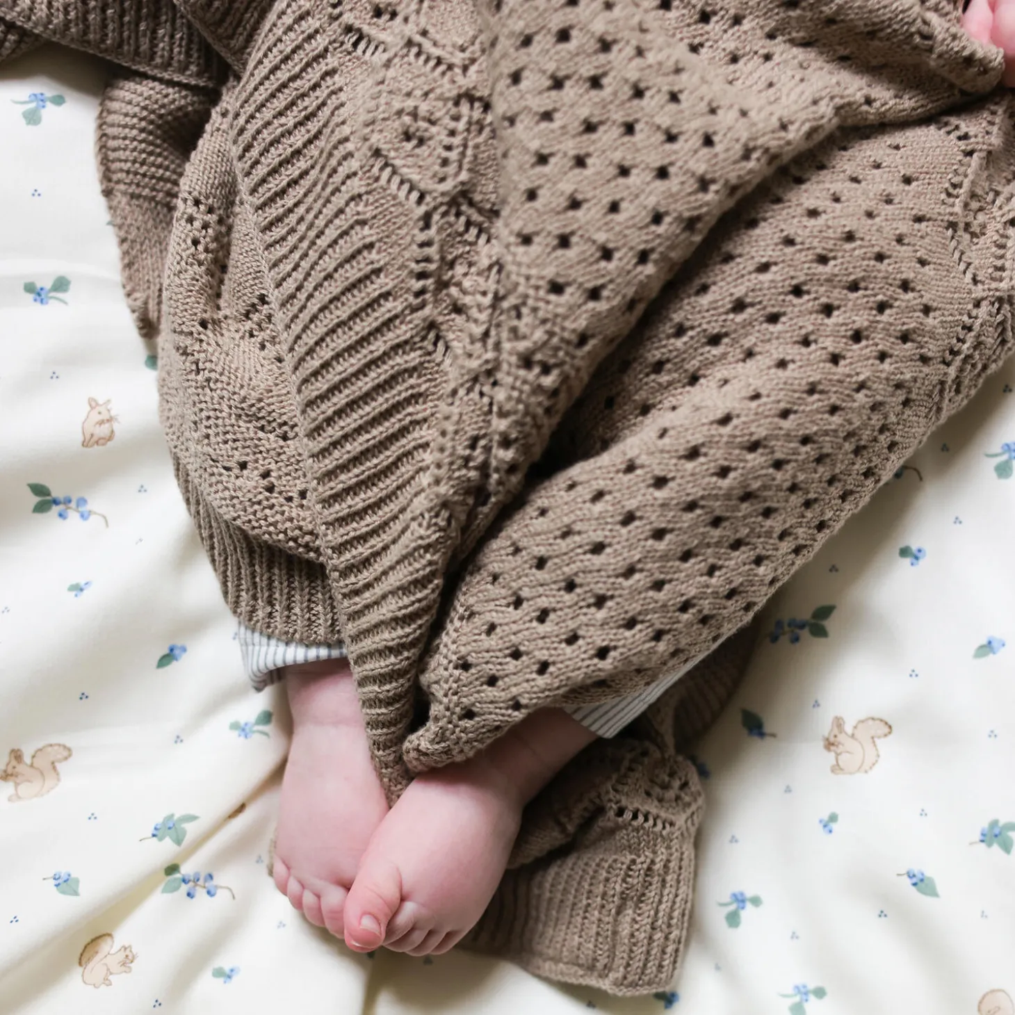 Omgiv din baby med en blid og blød omfavnelse med Pointelle Baby Striktæppet. Tæppets delikate pointelle strikdesign, vævet i GOTS-certificeret økologisk bomuld, indbyder til berøring og kram med sin superbløde tekstur. Det fine, åbne mønster tilføjer ikke kun et strejf af elegance, men sikrer også åndbarhed og komfort for din baby. Den perfekte gave lavet med kærlighed og miljøbevidsthed, der tilbyder bæredygtig luksus og delikat blødhed for små sovehjerter.