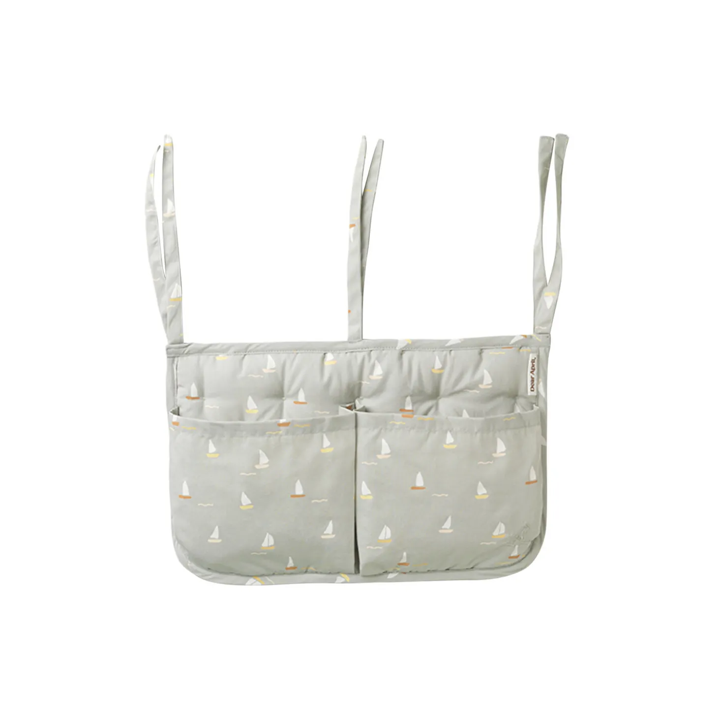 Vores skønne quiltede sengelomme er dekorativ og praktisk til opbevaring af yndlingsbamsen, den lille bog eller sutterne. Fastgøres nemt til sengen med fine bindebånd.