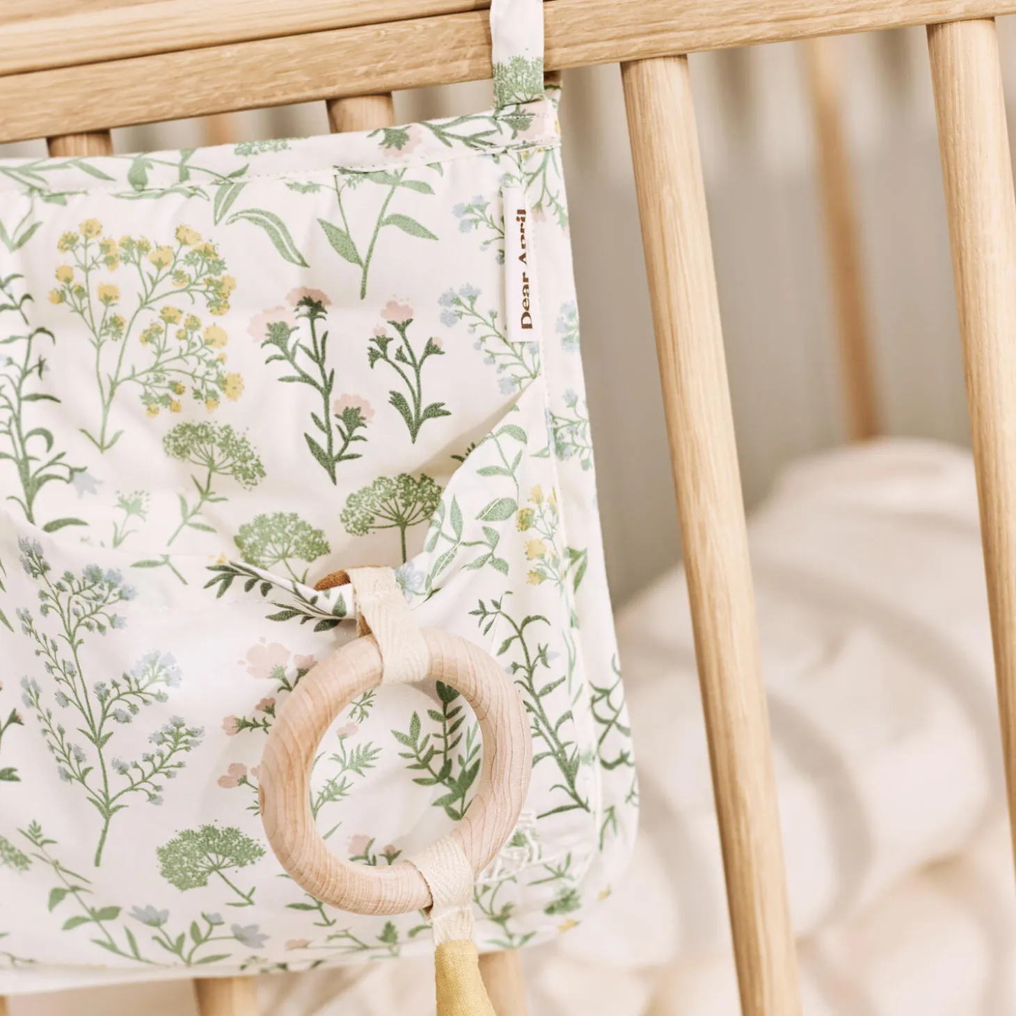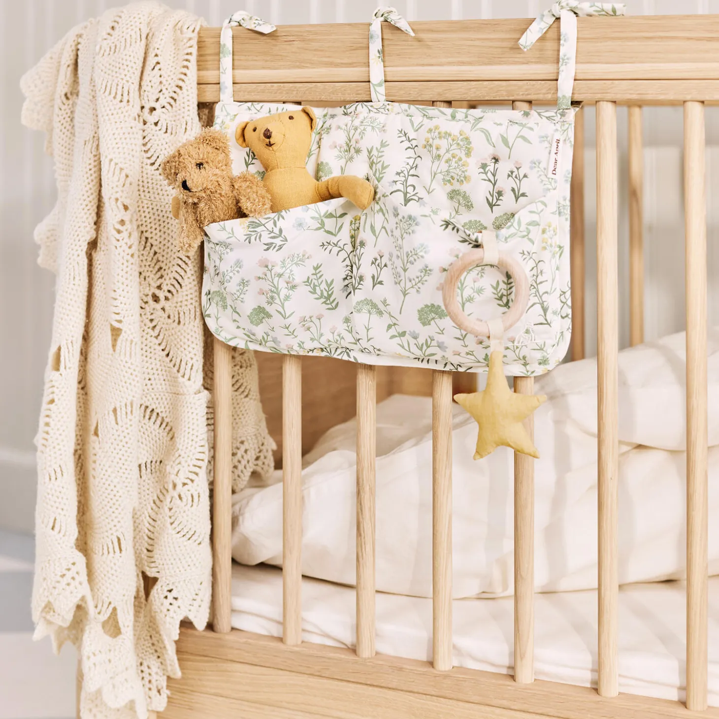 Vores skønne quiltede sengelomme er dekorativ og praktisk til opbevaring af yndlingsbamsen, den lille bog eller sutterne. Fastgøres nemt til sengen med fine bindebånd.