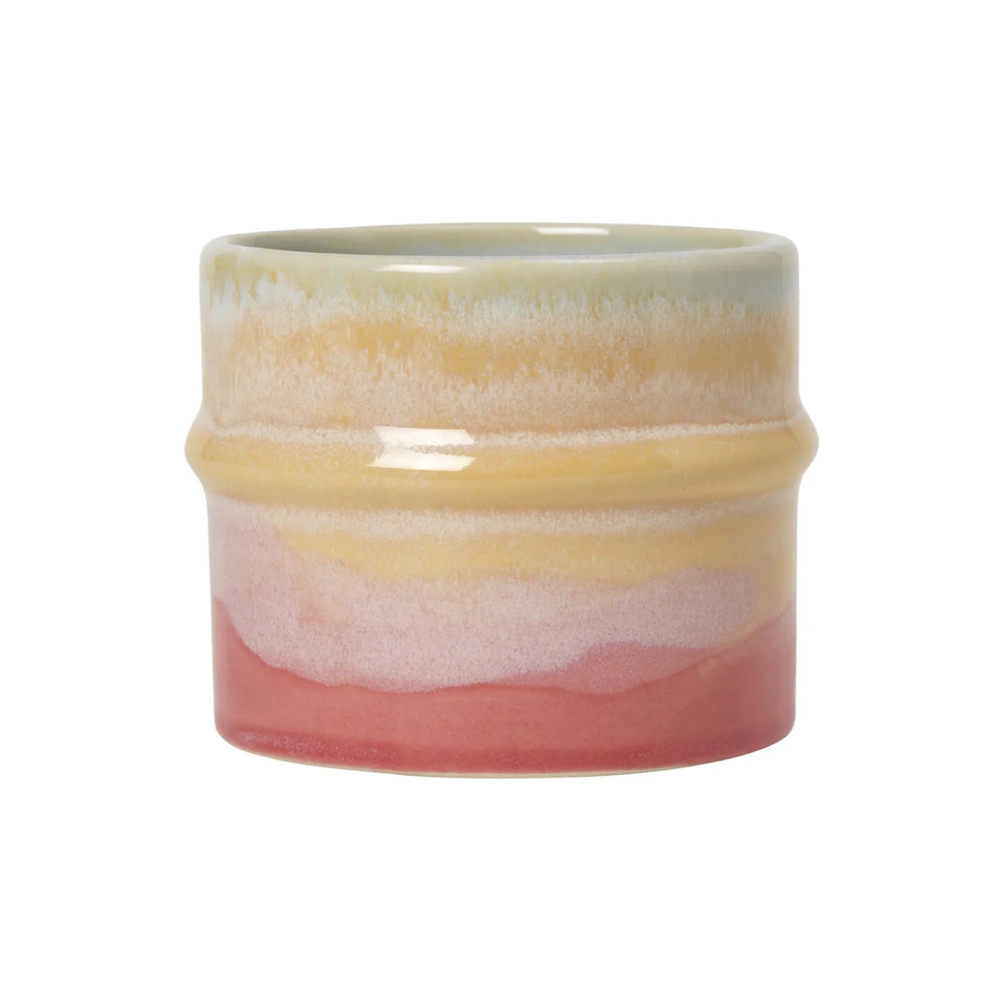Farverig popkultur møder håndlavede designtraditioner i samarbejdet mellem Kähler og designduoen KIMPOP, der tæller tv-personlighederne Sofie Linde og Joakim Ingversen. I en årrække har duoen med stor passion udforsket keramikkens verden, og deres viden om glasurer, brænding og det keramiske håndværk forener de med deres kærlighed til pop og populærkultur med udgangspunkt i de sene 80’ere og tidligere 90’ere, som de selv er rundet af. Og resultatet? Kollektionen Pottery, der er lige så farverigt som Sofie og Joakim. KIMPOP ønsker at udfordre danskernes brug af farver i boligen, bryde med de traditionelle skandinaviske farvetraditioner og invitere os til at tage flere farverige chancer i indretningen. Den nye kollektion fra Kähler X KIMPOP er et selvsikkert mix af pasteller, opulente glasurer, humoristiske detaljer og former, der vil frem i verden. Kollektionens krus rummer 27 cl og er perfekt til en god og stærk kop kaffe. Med fokus på både det visuelle udtryk og funktionaliteten er det designet ud fra et autentisk Kähler-design hentet fra arkiverne med en smuk, fremtrædende ring hele vejen rundt om kruset, der giver hånden et naturligt sted at gribe og hvile. Designet indbyder til at sidde med kruset og sanse – både designet, det du drikker og verden omkring dig.