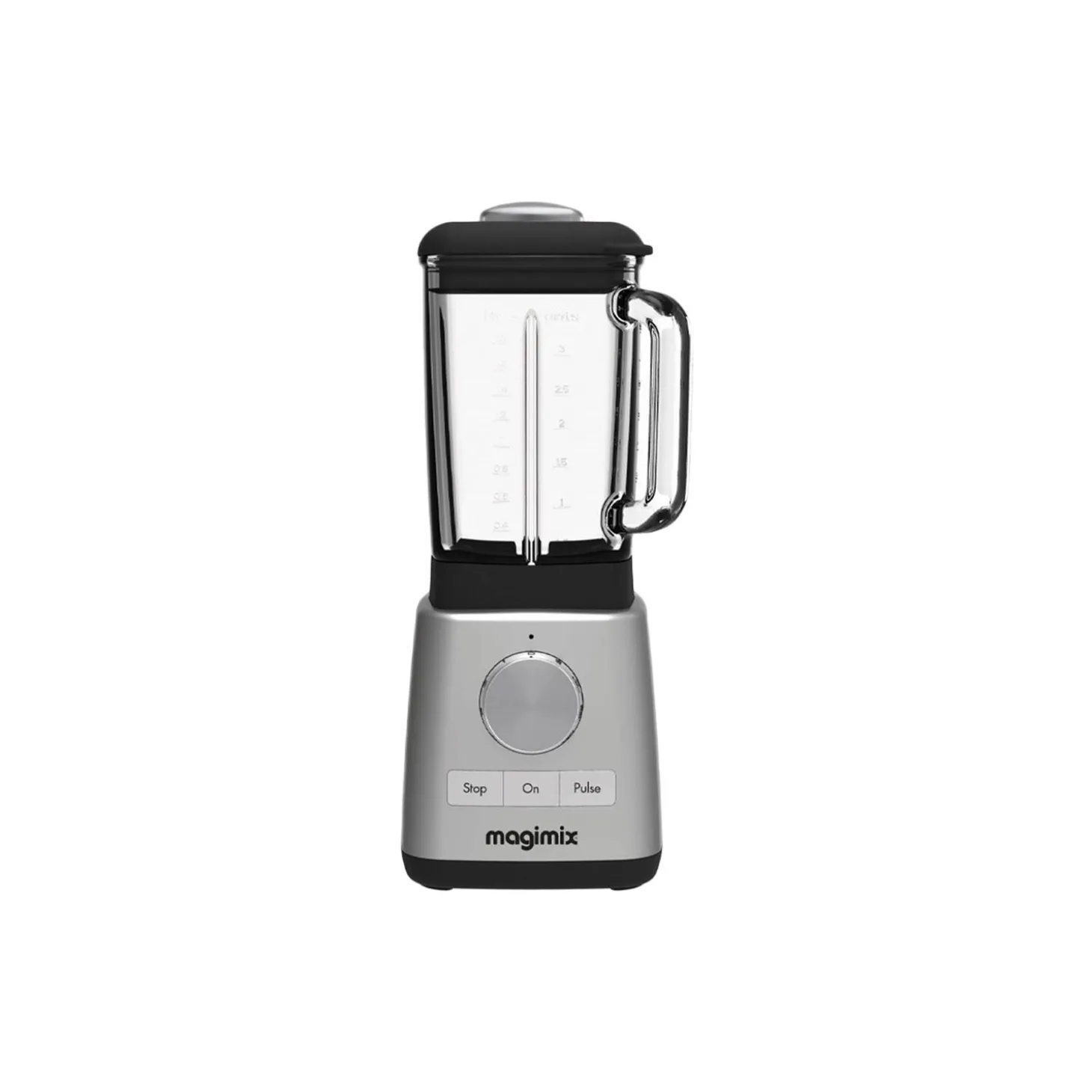 Power blender i stål og glas fra Magimix. Farve: mat stål. Mål: H: 42 x B: 15 x D: 17 cm. Indeholder: 1,8 l.