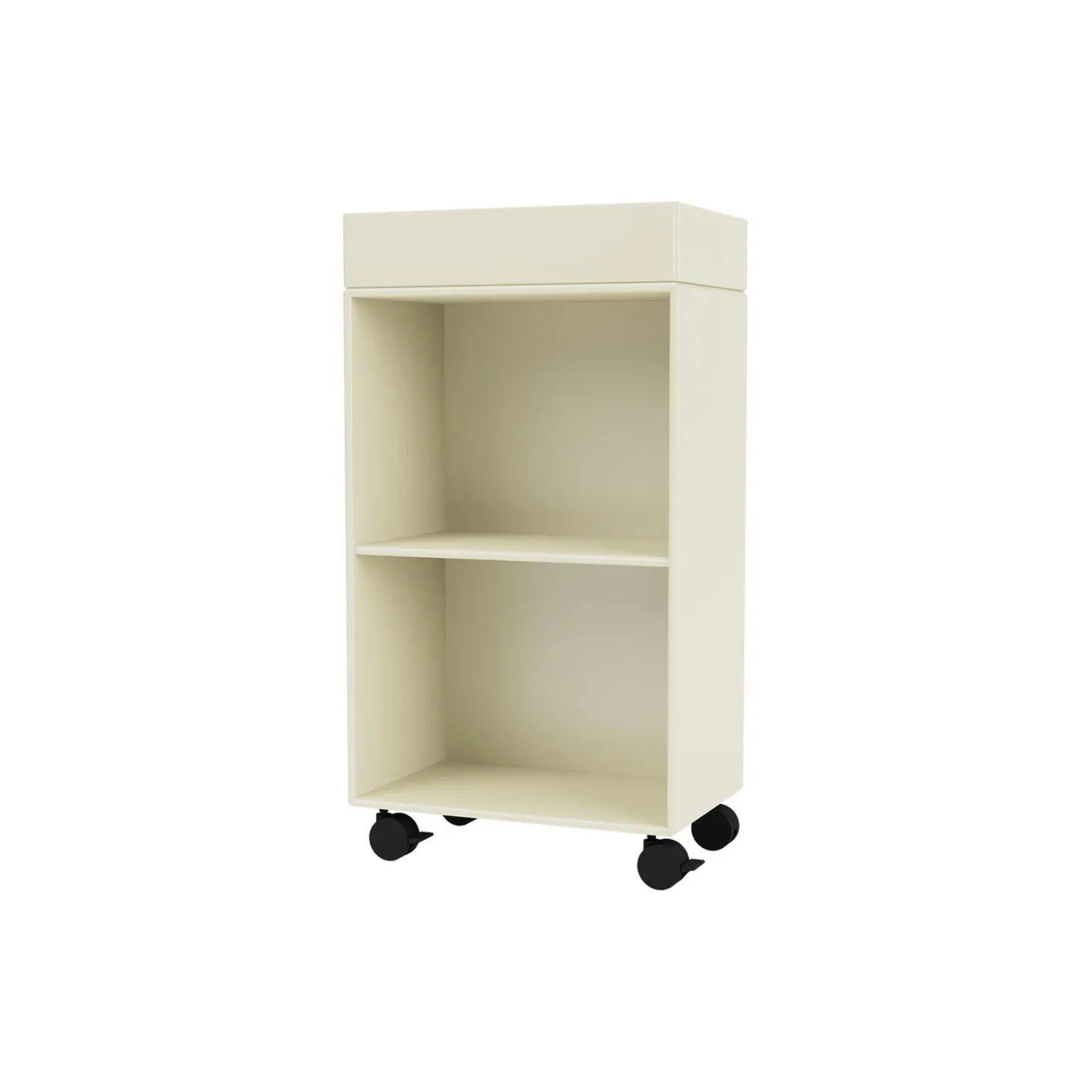 PREPPY er en badeværelsesvogn og mobil opbevaring på hjul lavet af 12 mm vandafvisende MDF. Modulet har to rum og en bakke på toppen. PREPPY er ideel til opbevaring af håndklæder, wellness- og skønhedsartikler – eller styling såsom planter.