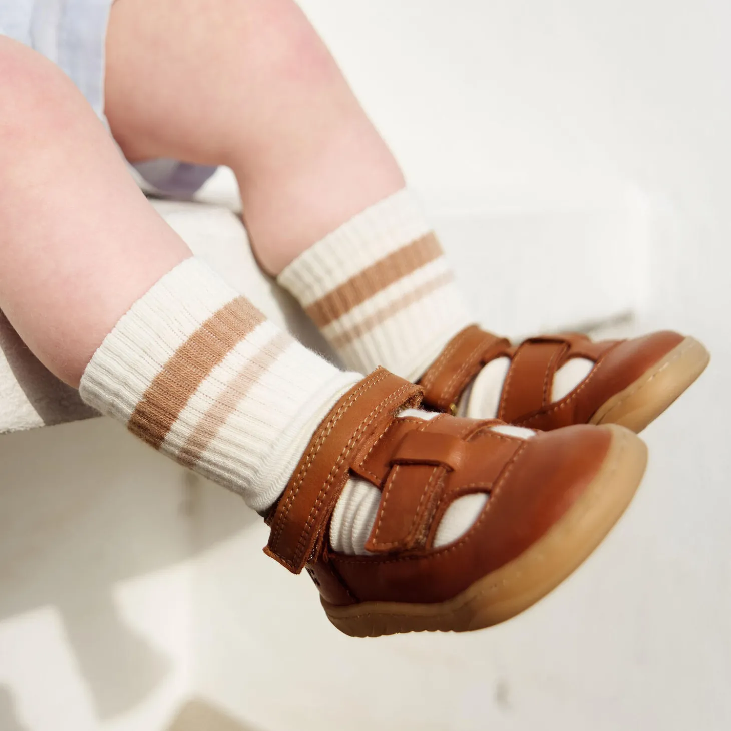 The Sven pre-walker has two adjustable velcro straps across the foot that make them easy to step into and give them adjustability for the perfect fit. It has a closed toe to offer some extra protection and a closed heal for extra stability. The outsole is made in a rubber material with zero drop, promoting a natural alignment between heel and forefoot. The prewalker has a wide fit for uninhibited toe movement during activities. It is normal in size with a firm grip on your child’s foot.