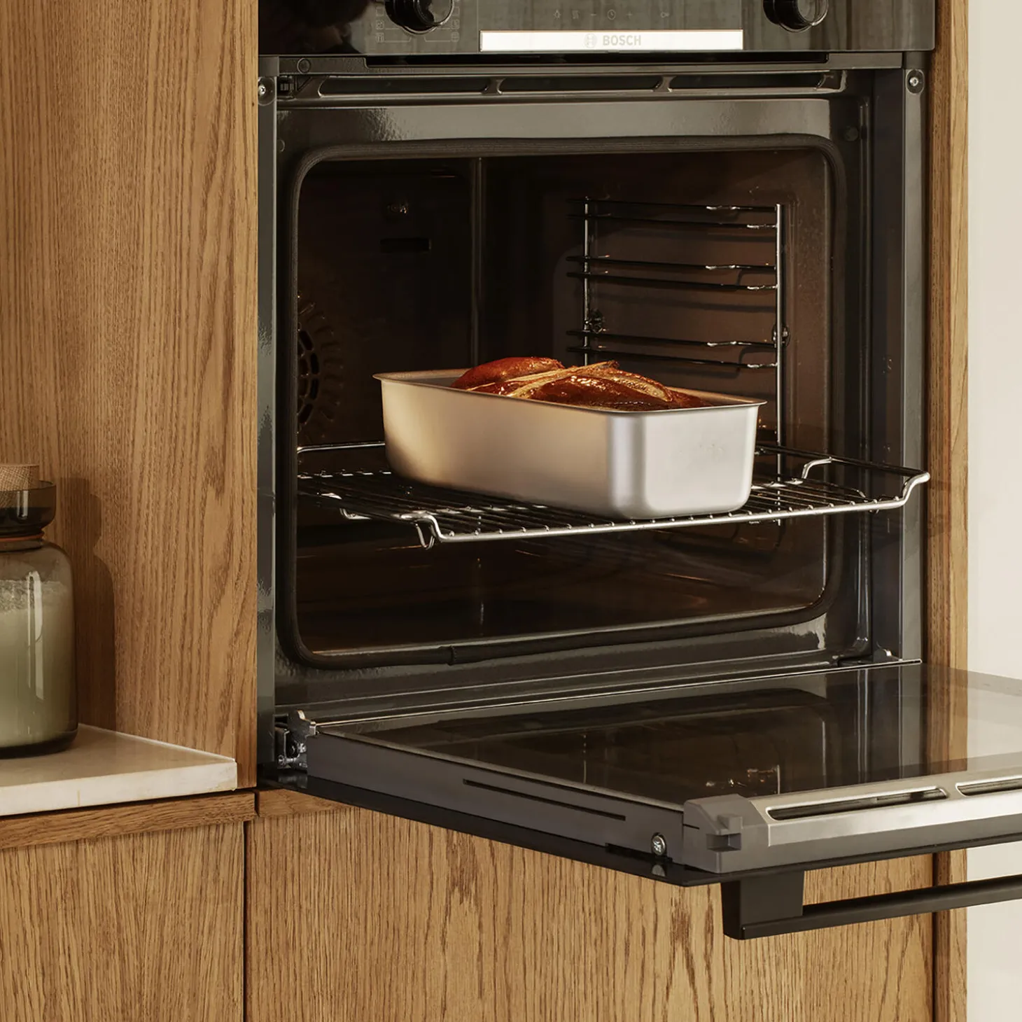 Professionel brød- og kageform, der giver den store bagelyst. Praktisk rundede hjørner og sider gør formen nem at arbejde med. En indvendig keramisk Slip-let® belægning sikrer, at brød- eller kagedej slipper let og gør formen nem at rengøre. Belægningen tåler op til 400 grader, er slidstærk (også over for brug af metalredskaber) og naturligvis helt fri for skadelige fluorstoffer.