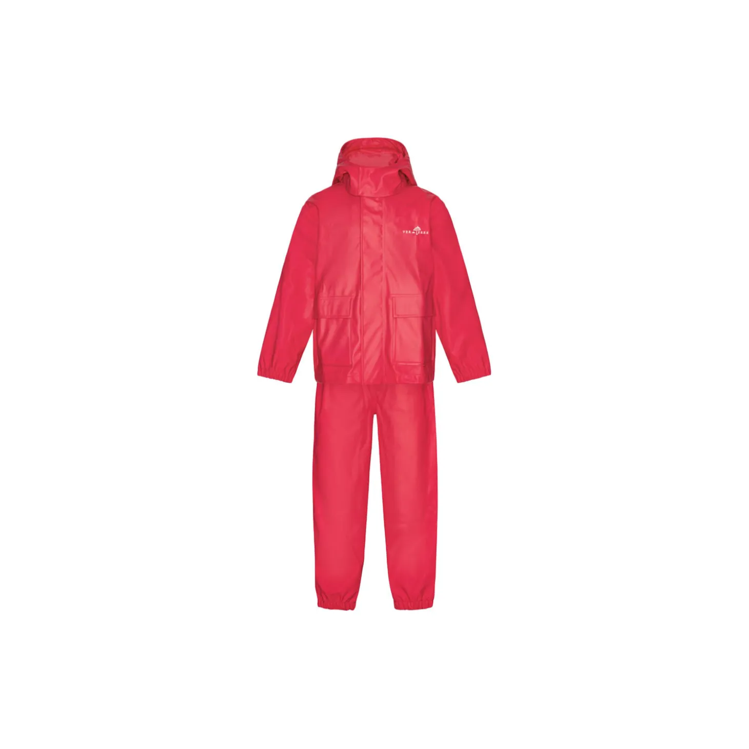 Regnsæt, jakke og bukser i vandtæt yderstof med svejsede sømme. Jakke med aftagelig hætte og ærmemanchet med elastik. Str. 1-3 år bukser har smæk med elastik seler, elastik manchet ved fod, elastik under fod.Str. 4-10 år bukser har justerbar elastik i talje.Regnsættet er pakket i pose med elastik snor.Vandtæthed 10.000mm.Vores PU-regnsæt er blødt og vandtæt med svejsede sømme. Det er velegnet til leg i vand og regn. PU-belægningen, der er på overfladen, kan ridses og få huller, hvis den gnides mod sand og sten (hårde overflader), eller hvis den bliver revet af grene eller skarpe genstande.Komposition: 70% polyester 30% polyurethane