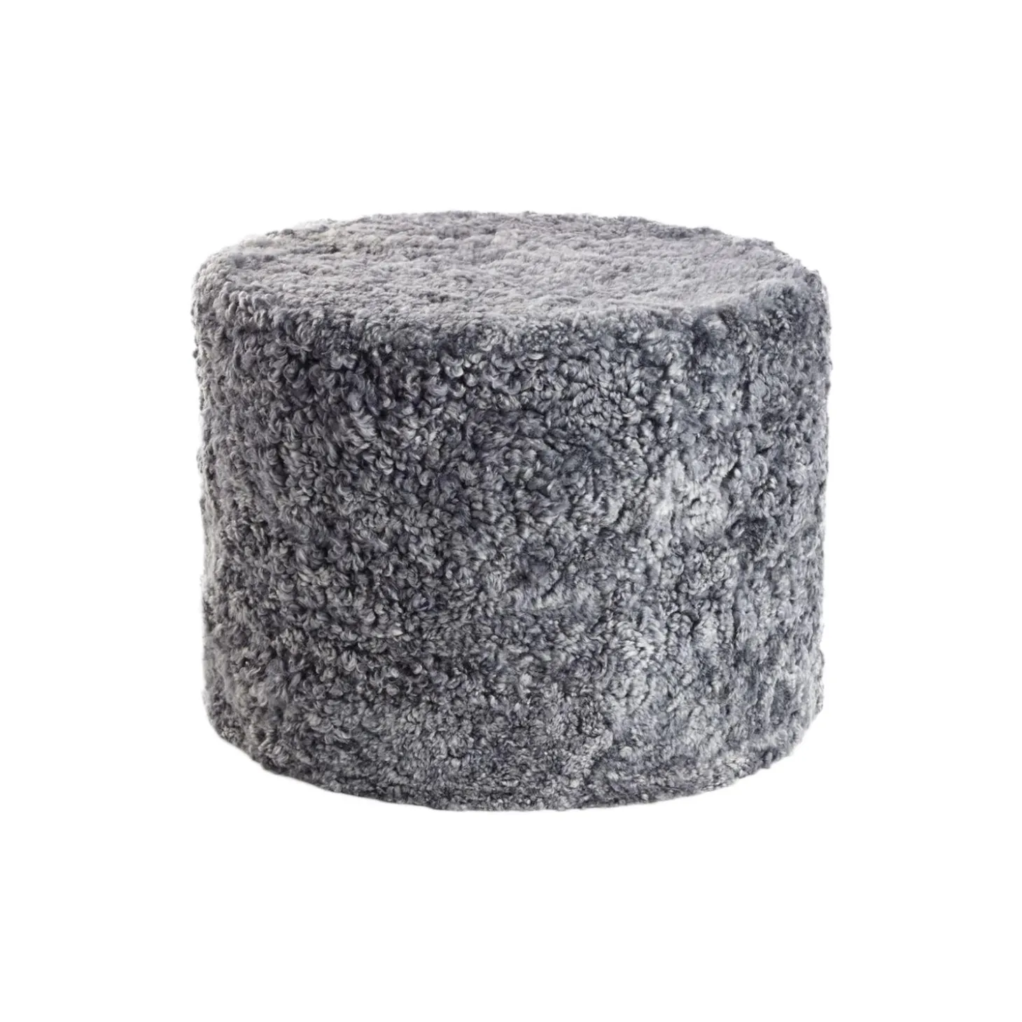 Puf i Newzealandsk korthåret & krøllet lammeskind fra NATURES Collection. Farve: light grey. Mål: 41×31 cm.