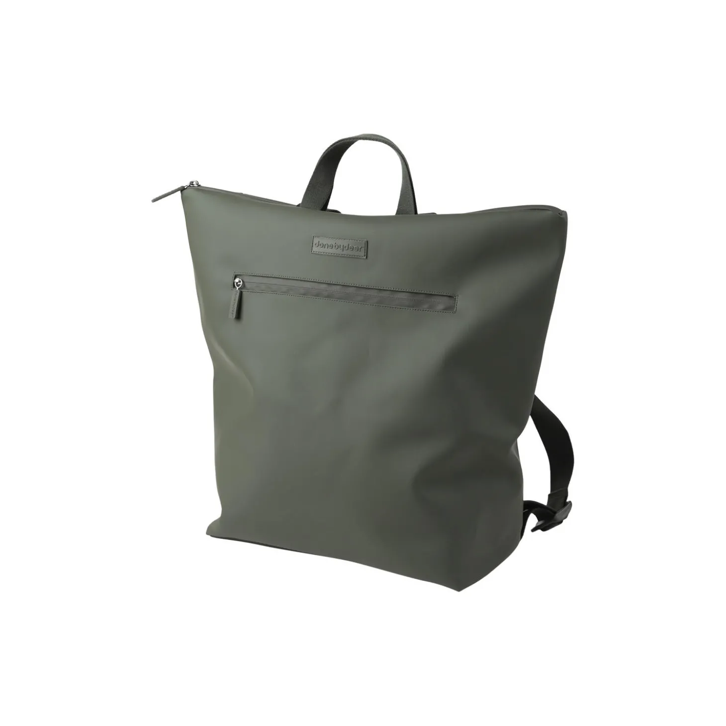 Puslerygsæk i 100% genanvendt polyester med PU-belægning fra Done By Deer.Farve: mørkegrøn. Mål: H: 45 x L: 40 x B: 15 cm.