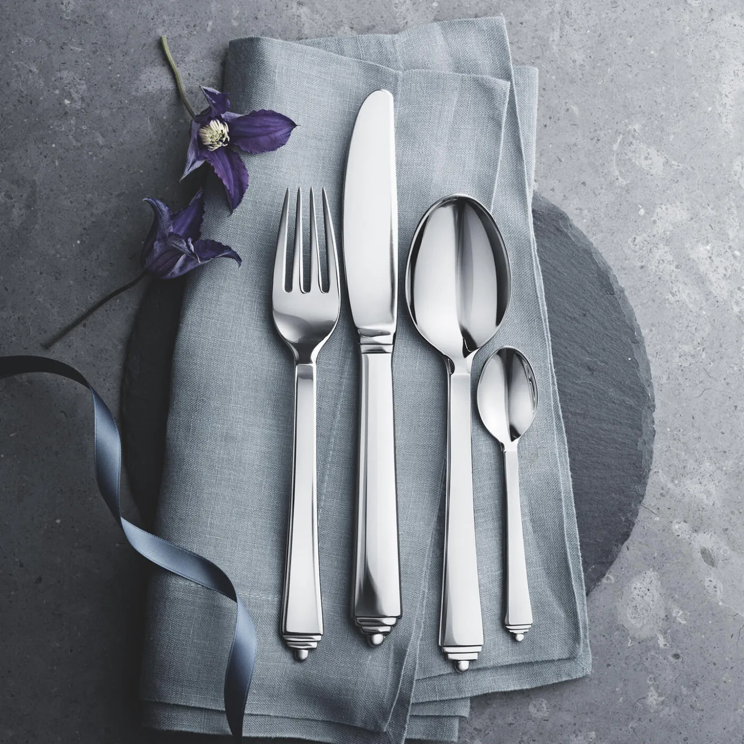 Pyramide bestikket er et smukt element i borddækningen, som forener tidløst design med klassisk funktionalitet. Det elegante bestik er lige så smukt i dag, som dengang det blev designet i 1926, og det pyramideformede mønster bringer et strejf af fortidens art deco-stil til bordet. Sættet består af bestik til fire personer, og du kan kombinere det med kollektionens andre dele.