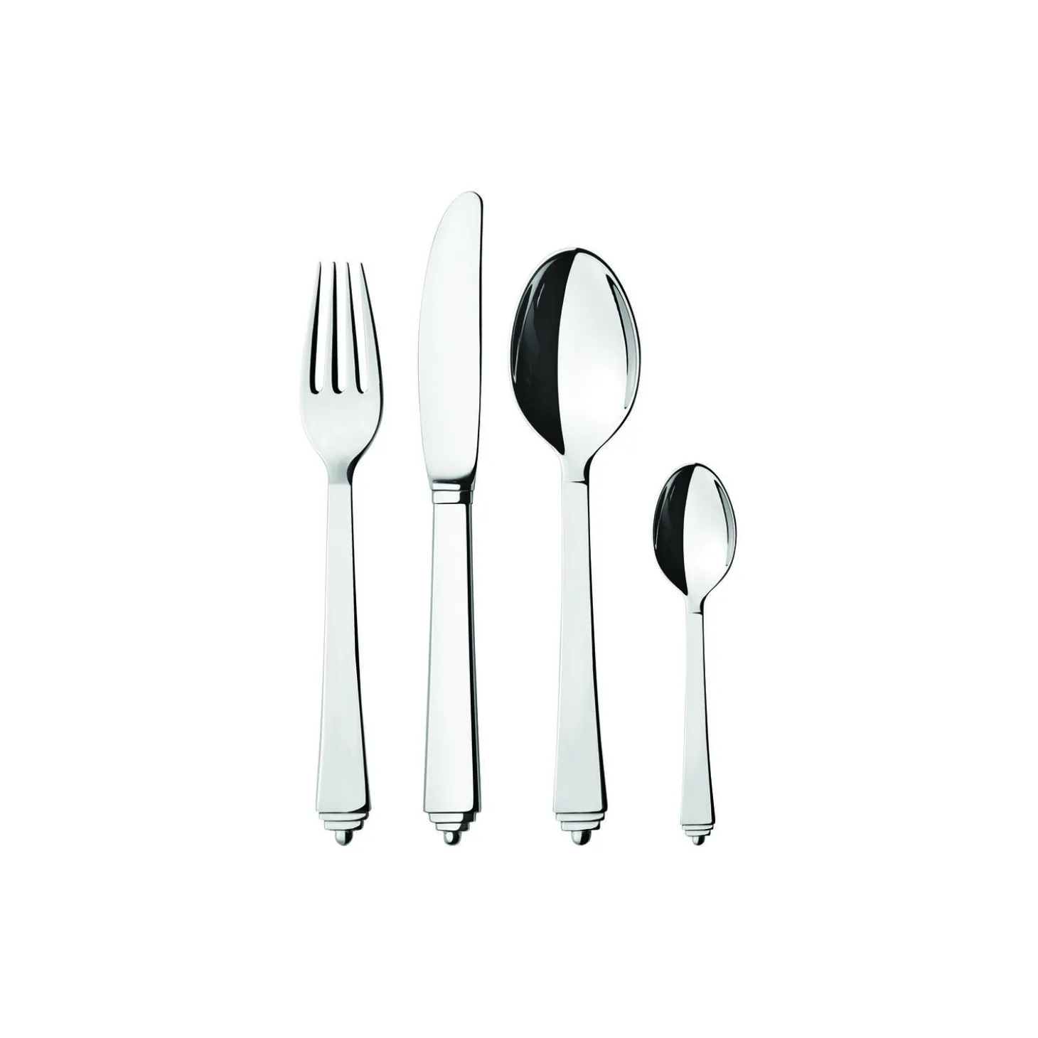 Det ikoniske Pyramide bestik er en designklassiker fra 1926, som fuldender borddækningen med tidløs elegance. Bestikket bringer et strejf af art deco-stil til bordet med sit pyramideformede mønster, som afrunder skaftet på sofistikeret vis. Sættet består af fire dele, som du kan kombinere med resten af den elegante kollektion.