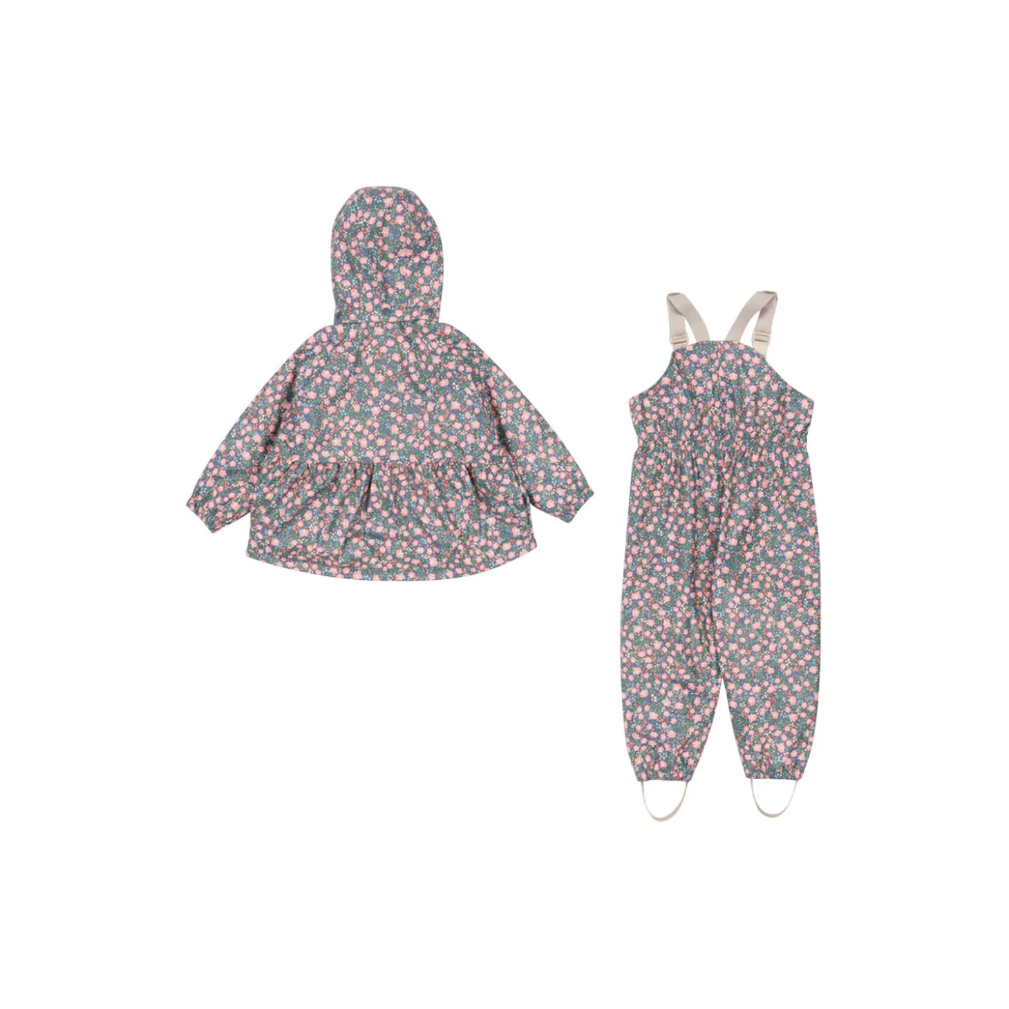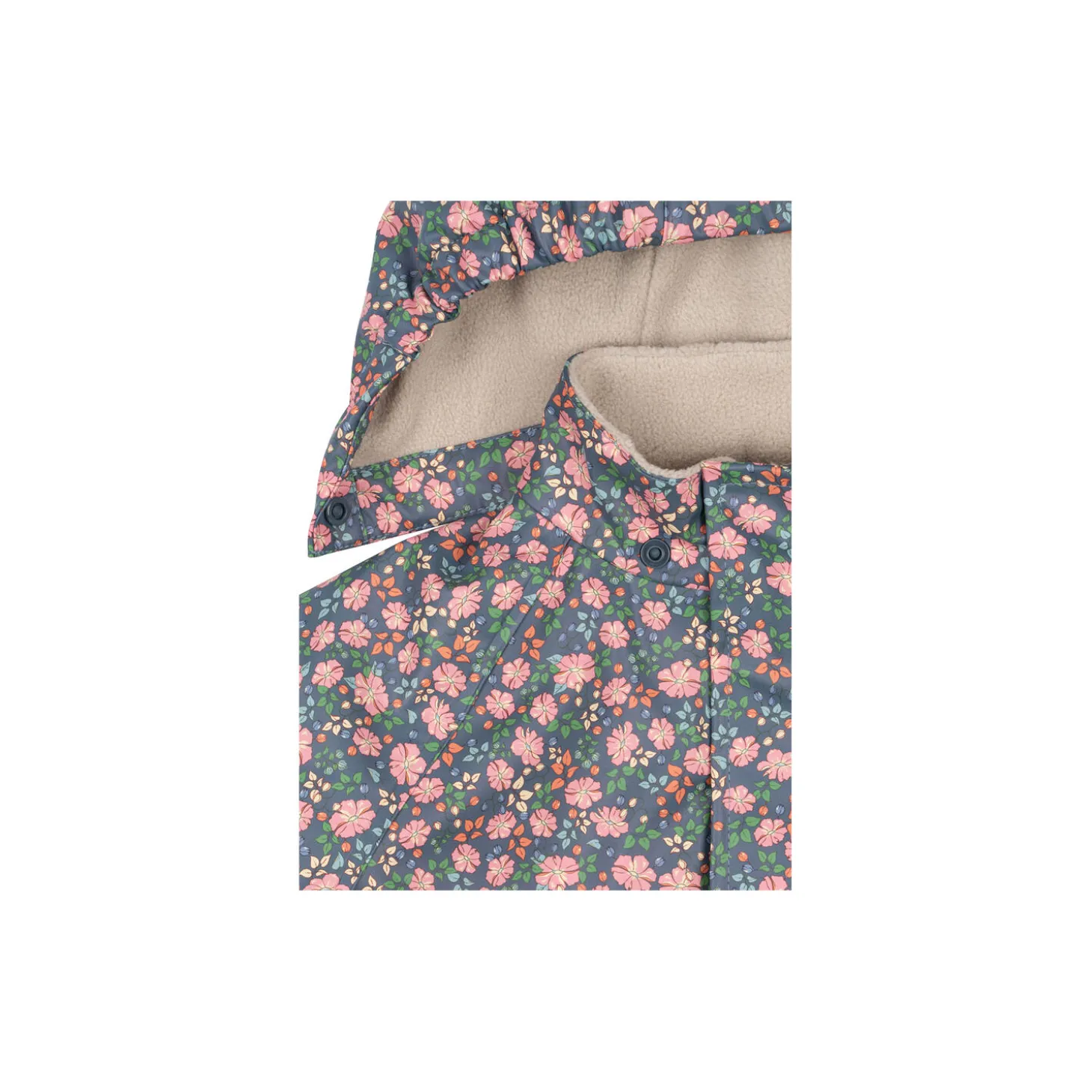 Wind-resistant and waterproof PU rain set with warm fleece lining inside. Features essential detailing like a lined, detachable hood, elastic cuffs, and welded seams for complete protection against the elements.