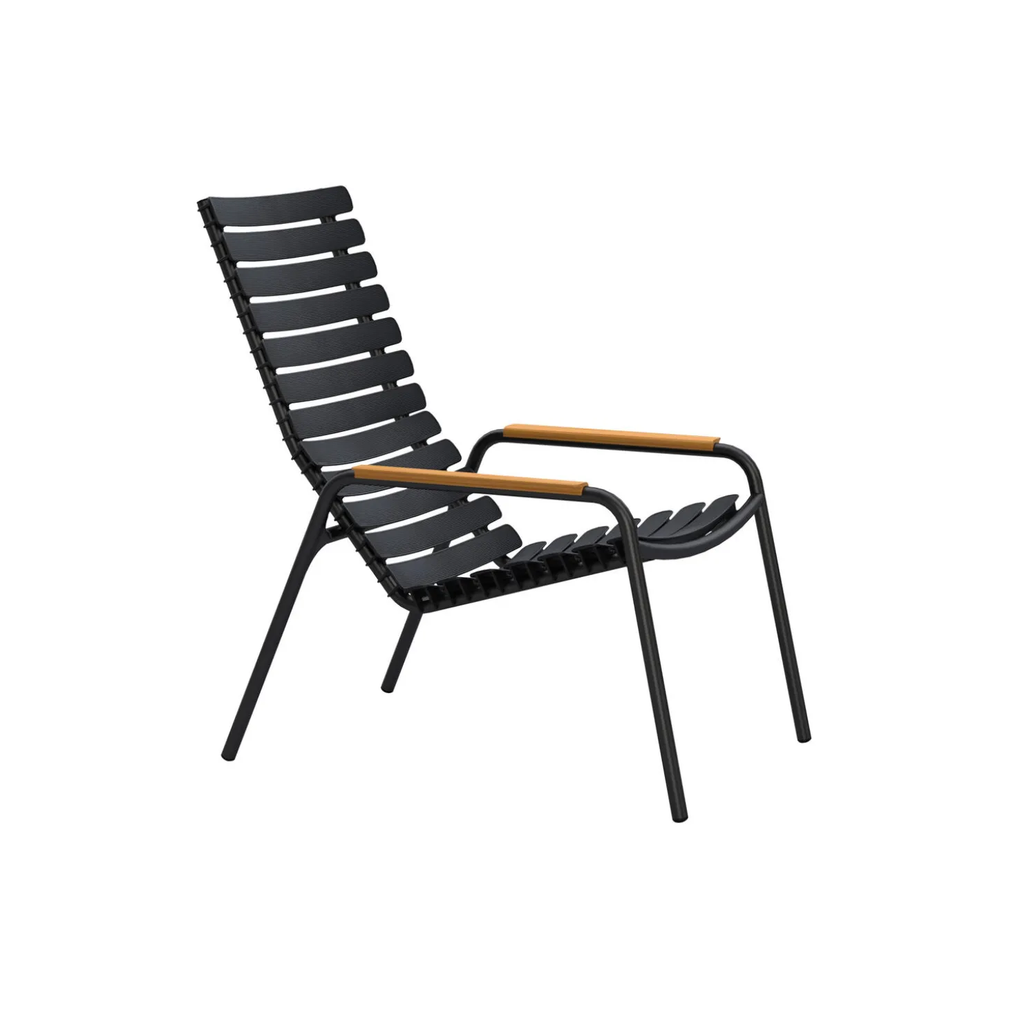 ReCLIPS er en serie af stole med brede plastiklameller klippet på en let pulverlakeret aluminiumsramme. Lamellerne er lavet af dansk husholdningsplastikaffald og produceret i Danmark. Teknologien bag genbrug af husholdningsaffald af plast til møbelprodukt. ReCLIPS Lounge stole kommer i 4 mono farver med valg af armlæn i bambus eller aluminium. Aluminiumsrammen kombineret med de UV-beskyttede plastlameller holder vedligeholdelsen på et minimum.