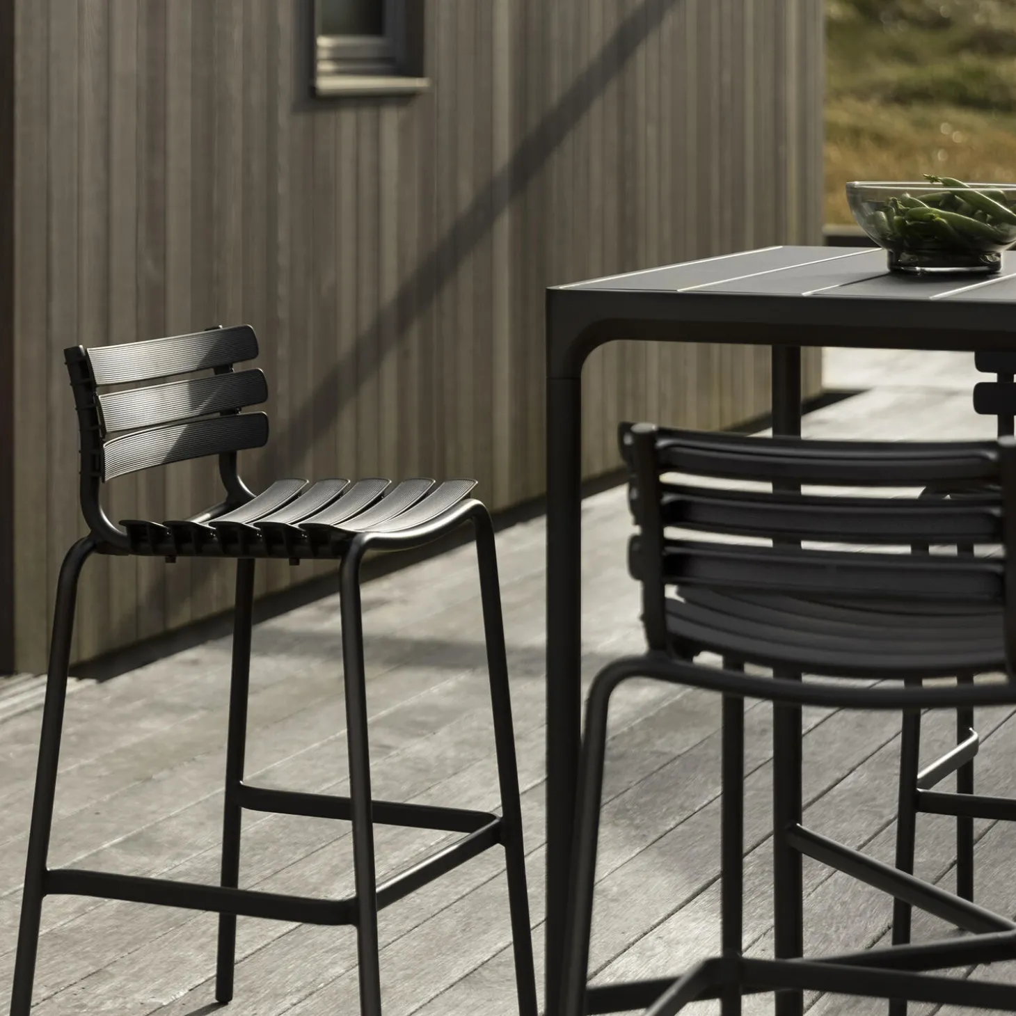 ReCLIPS barstol i pulverlakeret aluminium og plast fra HOUE. Farve: black. Mål: H: 99 x B: 55 x D: 56 cm. Siddehøjde: 76-79 cm. Design: Henrik Pedersen.