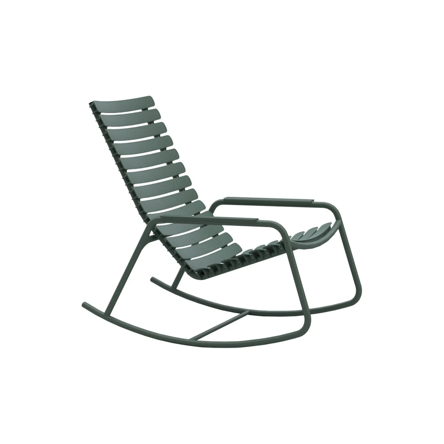 ReCLIPS er en serie af stole med brede plastiklameller klippet på en let pulverlakeret aluminiumsramme. Lamellerne er lavet af dansk husholdningsplastikaffald og produceret i Danmark. Teknologien bag genbrug af husholdningsaffald af plast til møbelproduktion er udviklet i Danmark. Ser man på ReCLIPS, ser man i bund og grund på resultatet af at blande dansk design og dansk innovation i at anvende nytænkning og materialer i en stol. ReCLIPS Gyngestol kommer i 4 mono farver med valg af armlæn i bambus eller aluminium. Aluminiumsrammen kombineret med de UV-beskyttede plastlameller holder vedligeholdelsen på et minimum.