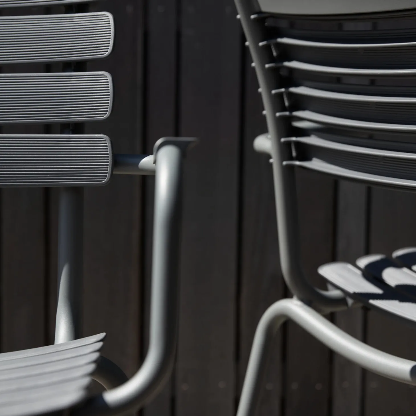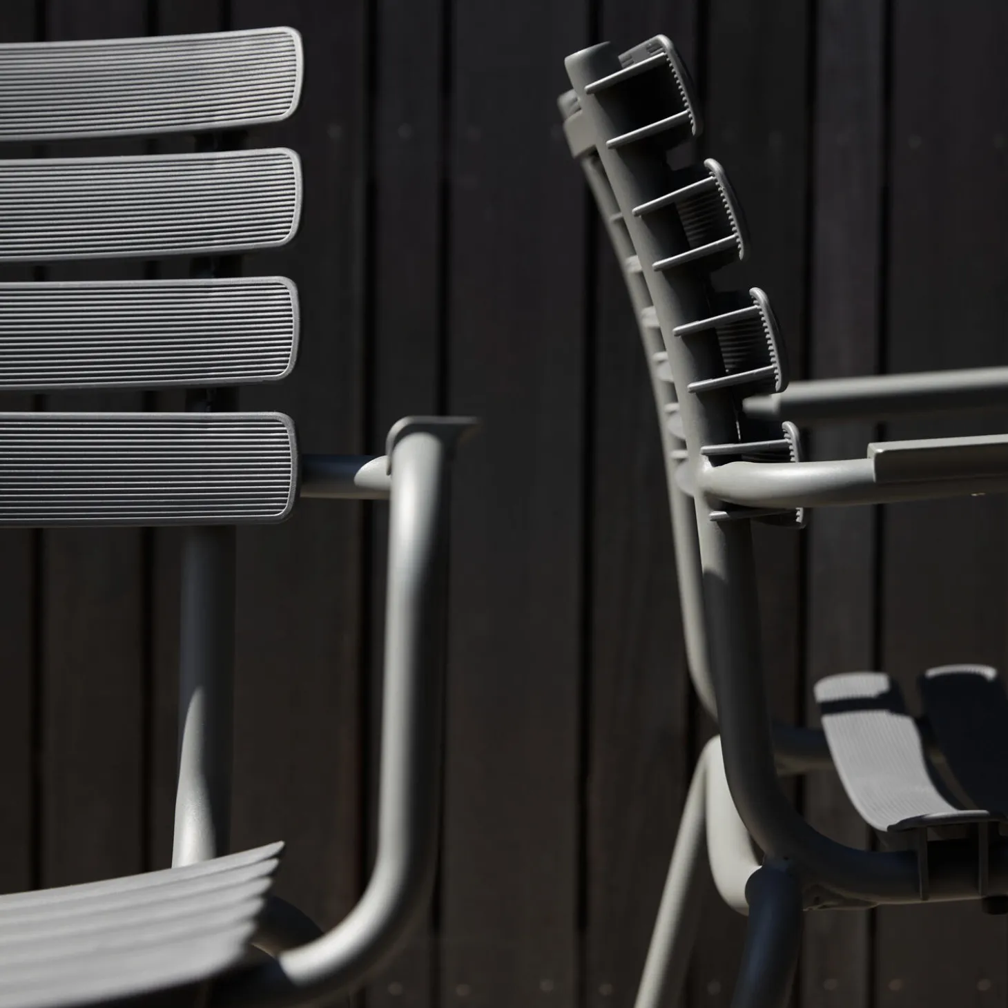 ReCLIPS er en serie af stole med brede plastiklameller klippet på en let pulverlakeret aluminiumsramme. Lamellerne er lavet af dansk husholdningsplastikaffald og produceret i Danmark. Teknologien bag genbrug af husholdningsaffald af plast til møbelproduktion er udviklet i Danmark. Med ReCLIPS ser du i bund og grund på resultatet af at blande dansk design og dansk innovation – og omsætte denne nytænkning og materialer til en stol. ReCLIPS Spisestuestol fås i 4 monofarver med mulighed for at tilføje armlæn i bambus. Aluminiumsrammen kombineret med de UV-beskyttede plastlameller holder vedligeholdelsen på et minimum. ReCLIPS Spisestuestole kan stables.
