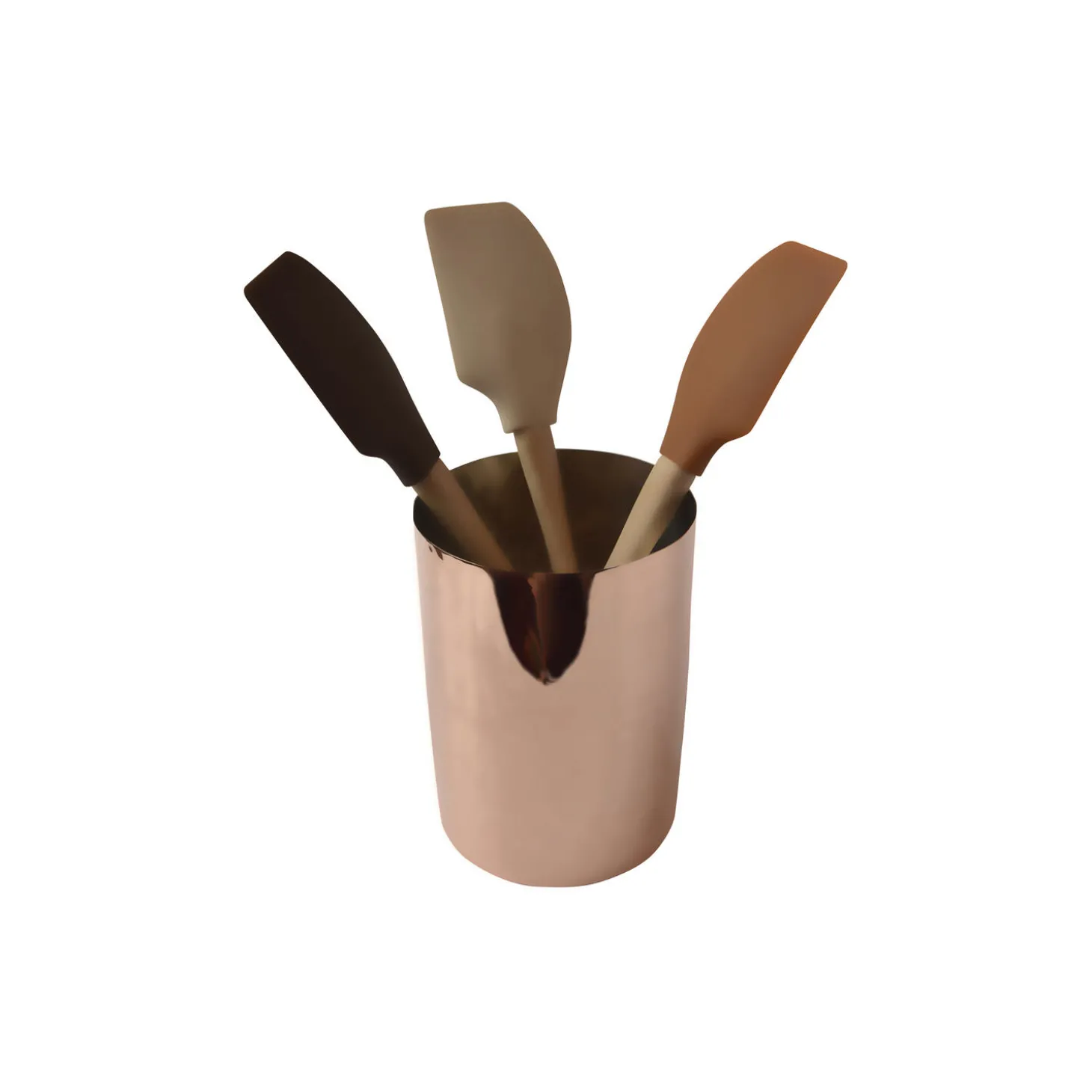 Redskabskrukke af børstet kobber i elegant fransk design. Opbevar dine grydeskeer, piskeris og dejskrabere med stil. Redskabskrukken fra Mauviel giver dig både praktisk opbevaring og et smukt designelement i køkkenet.