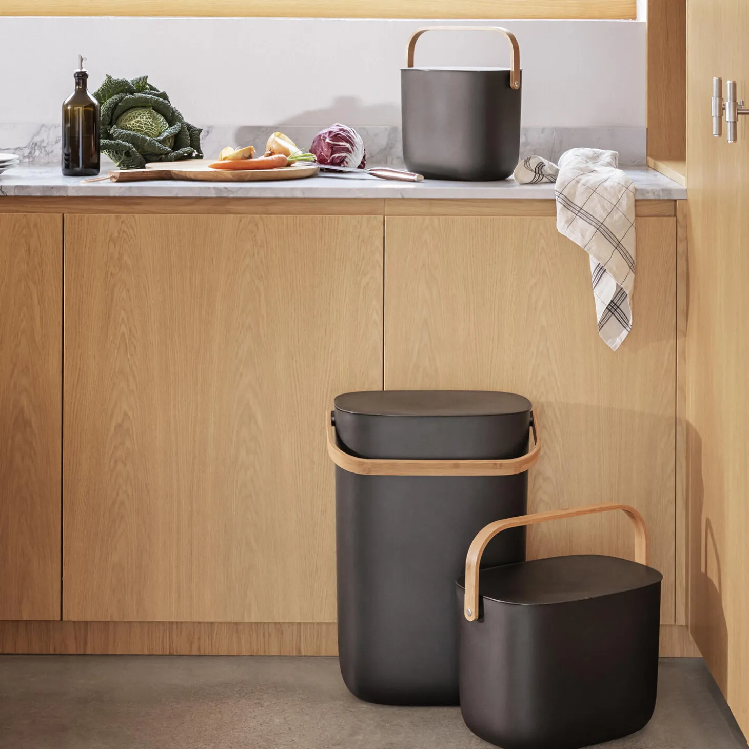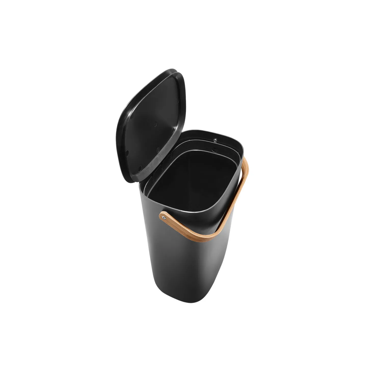 En skraldespand behøver hverken være stilforladt eller gemt af vejen. Den elegante Reflect Affaldssorteringsspand kan stå fremme som en del af indretningen, mens den gør det nemmere at holde hjemmet rent og ordentligt. Med en eller flere affaldssorteringsspande kan du aktivt reducere mængden af affald, der sendes til forbrænding, samtidig med at du støtter genbrug og kompostering ved at separere affald fra genanvendelige materialer som papir, plast, metal og glas. Spandene kan vægmonteres eller stables, så du kan spare på pladsen. Det smarte lågdesign gør det nemt at holde låget åbent, når du smider affald ud, idet det automatisk griber og balancerer på spandens kant. Affaldsspanden eliminerer også behovet for specialposer med den indbyggede poseholder, der hurtigt kan tilpasses forskellige posestørrelser. De indbyggede håndtag gør det nemt at transportere affaldssorteringsspanden, der er fremstillet af genanvendt plast og bambus.