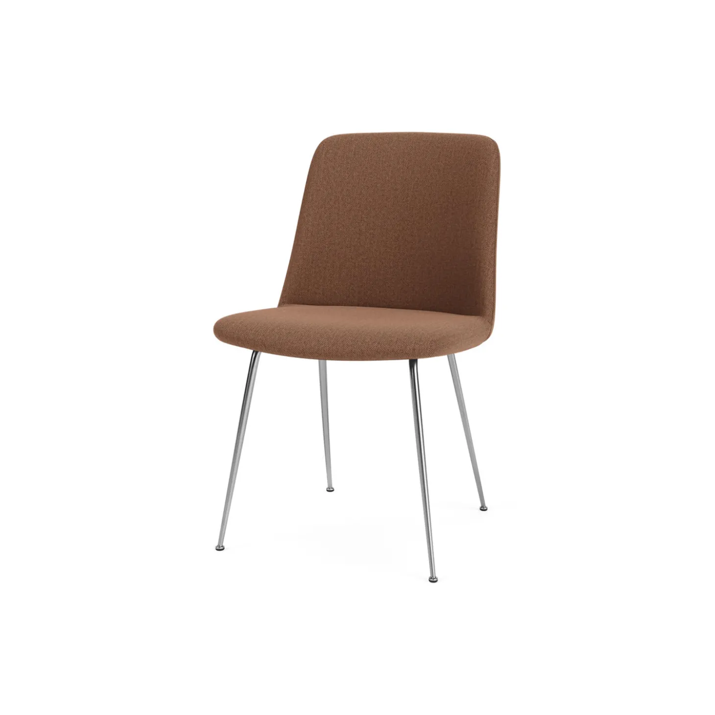 Rely HW8 spisebordsstol med polstring i Re-Wool 378 af Kvadrat og stel i forkromet stål fra &Tradition. Farve: camel/chrome. Mål: H: 82 x B: 47 x D: 55 cm. Siddehøjde: 48 cm. Design: Hee Welling.