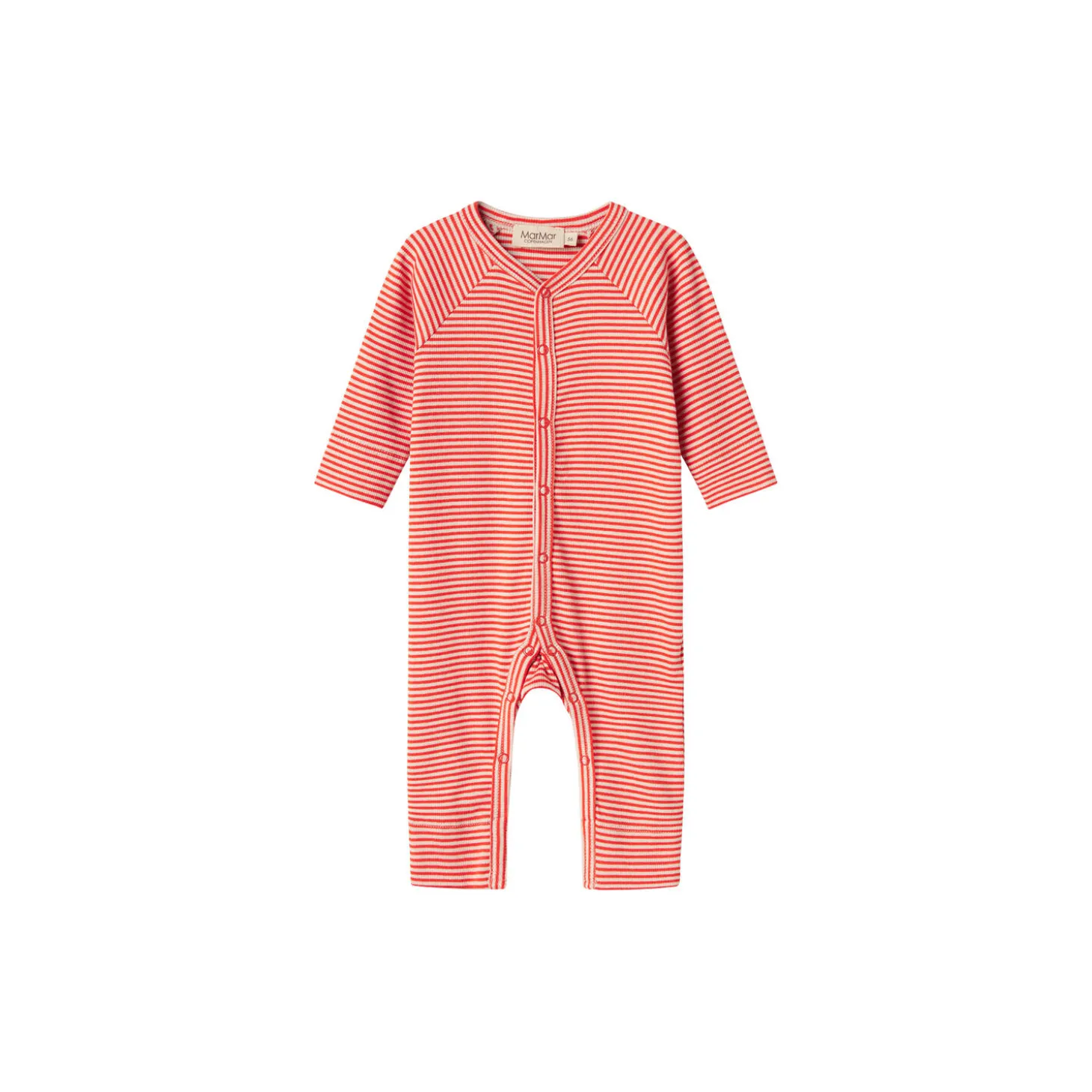 Enkel langærmet heldragt der kan knappes helt fra hals og ned langs begge ben med trykknapper for nem bleskiftning.