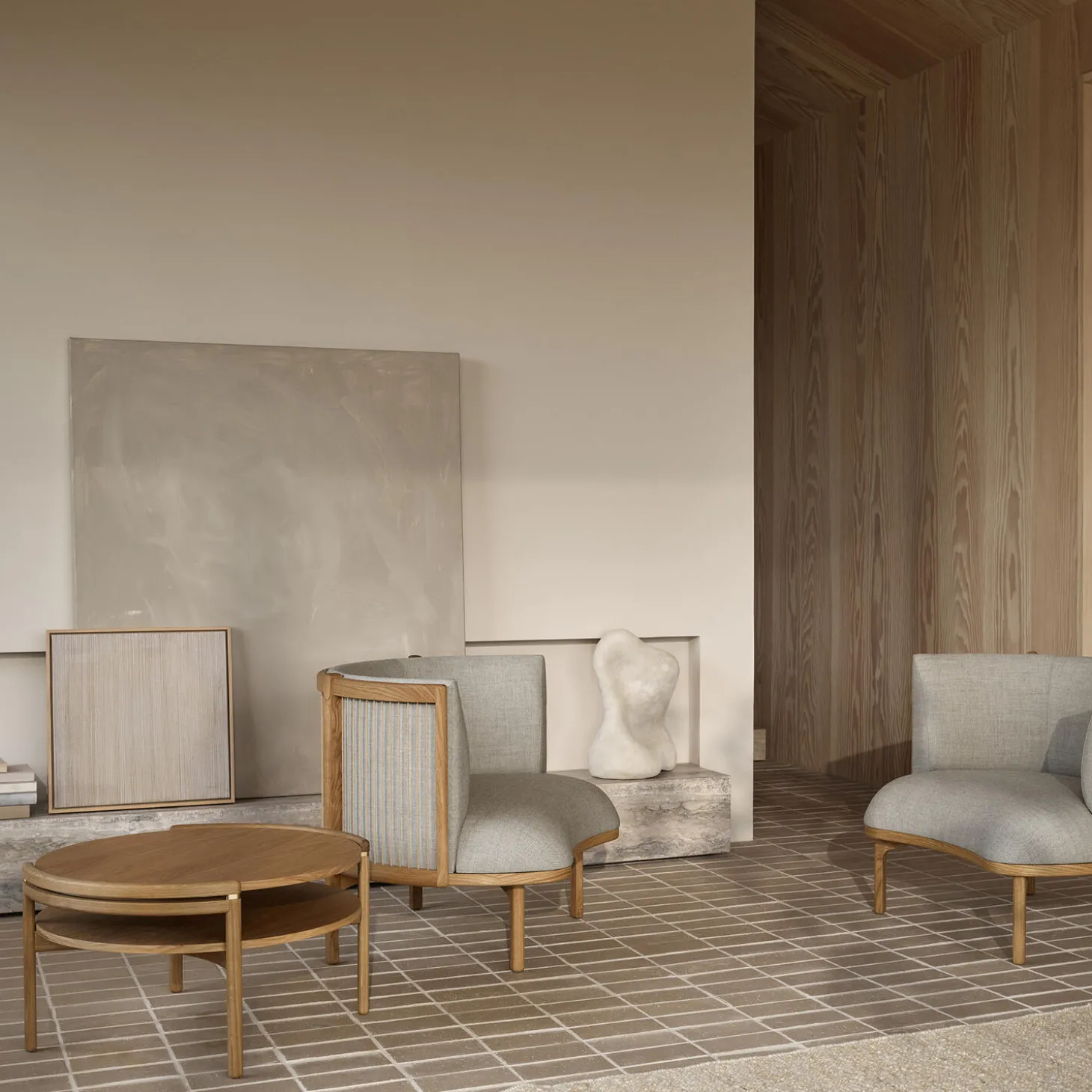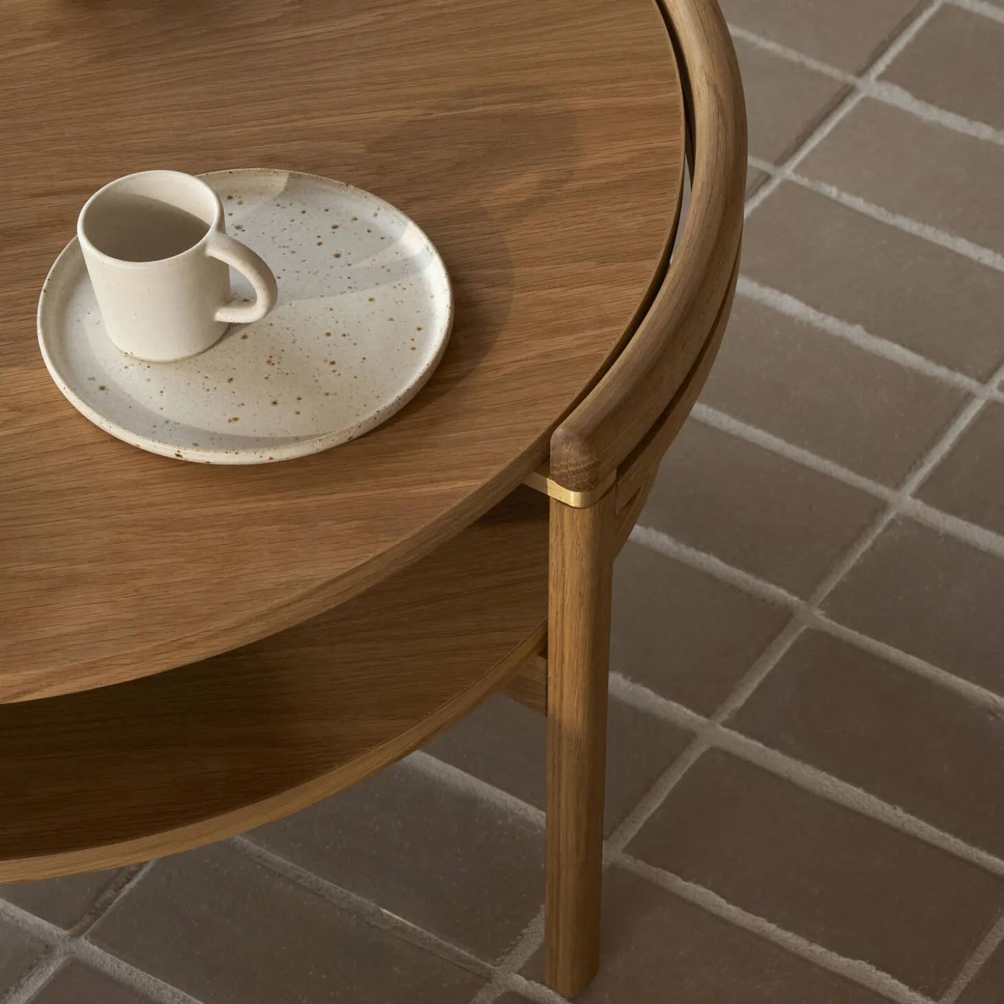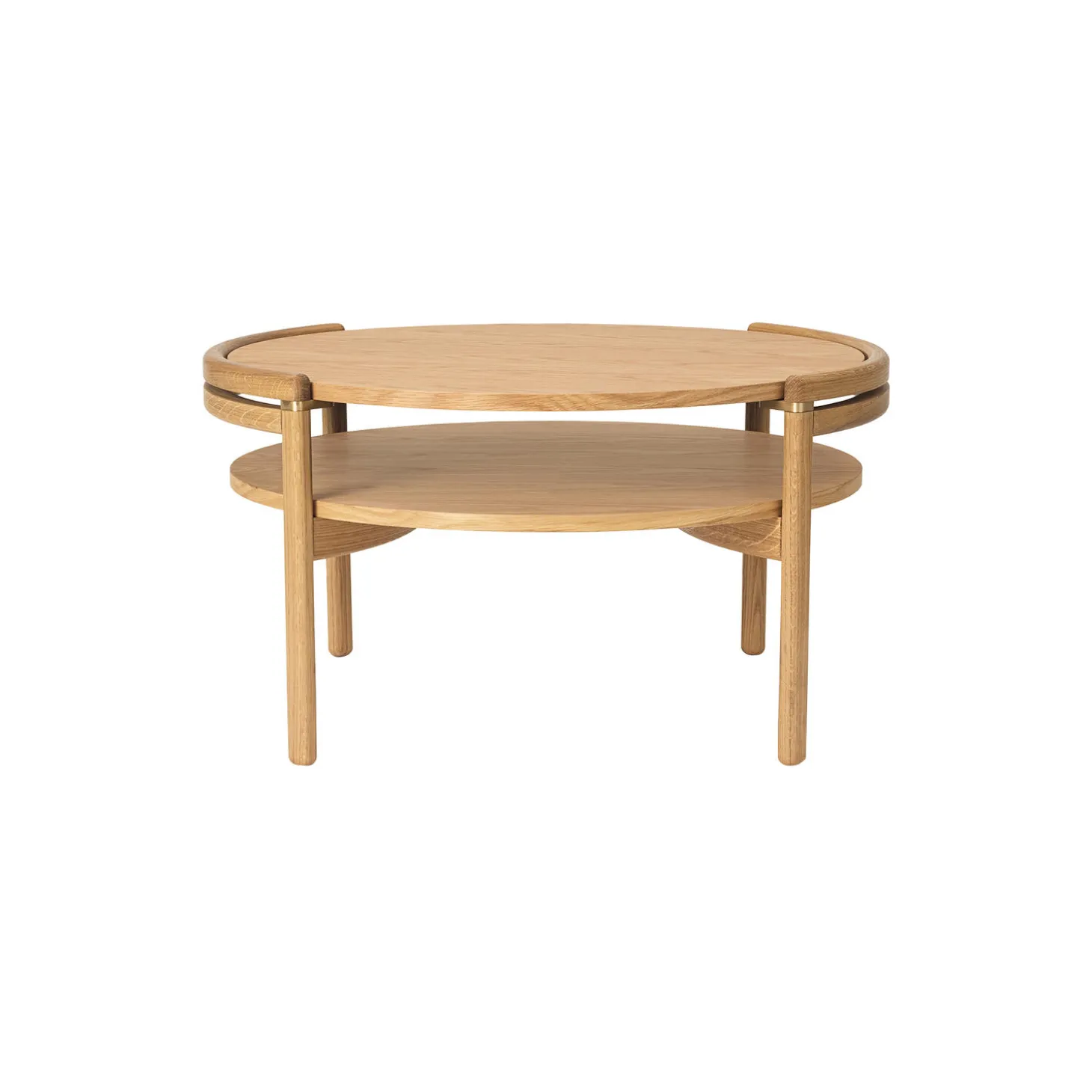 RF1905 Sideways Sofabord kombinerer traditionelt dansk håndværk, eksklusive materialer og moderne æstetik. Bordet, der fås i eg eller valnød, er designet af Rikke Frost og består af to dele: en organisk, rund ramme i massivt træ og en vendbar bordplade med laminat på den modsatte side, der hviler på fire elegante messingbeslag. Bordpladen fås desuden i italiensk marmor.
