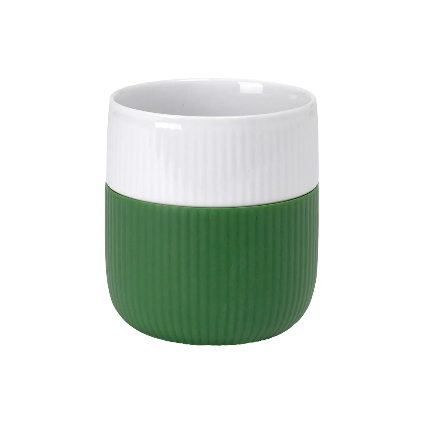 Bring naturen ind i dit hjem med det riflede Contrastkrus i skovgrøn. Det praktiske silikone hylster i mørkegrøn holder din drik varm og sikrer et behageligt greb. Kruset er en del af kollektionen Riflet Contrast; et udvalg af farverige og alsidige krus.