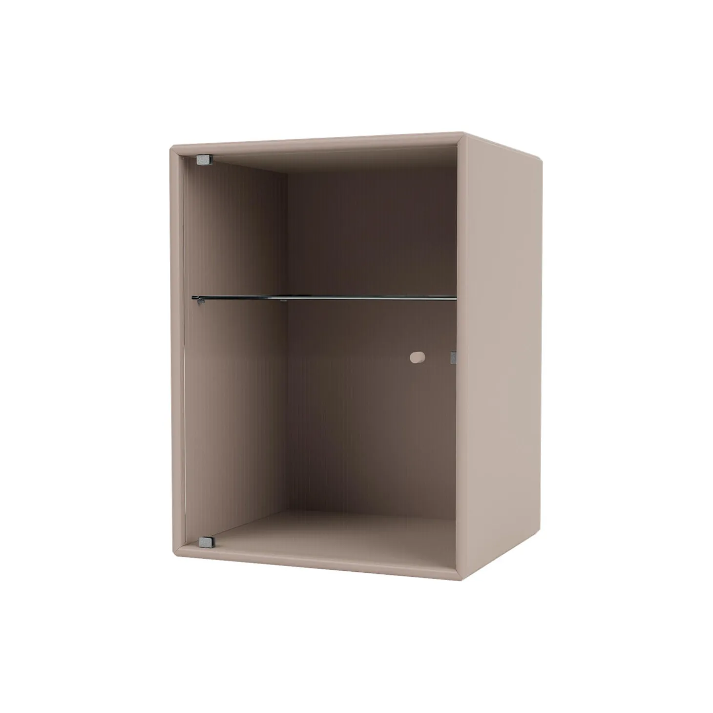 RIPPLE er et lille skab til badeværelset – perfekt til opbevaring af wellness- og skønhedsartikler. Skabet har en glaslåge i riflet glas og et lakeret greb. En glashylde er placeret indvendigt 18,3 cm fra toppen. RIPPLE fås kun med ophængsbeslag.