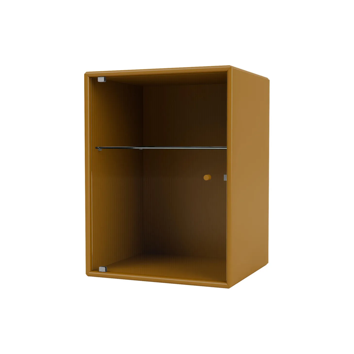 RIPPLE er et lille skab til badeværelset – perfekt til opbevaring af wellness- og skønhedsartikler. Skabet har en glaslåge i riflet glas og et lakeret greb. En glashylde er placeret indvendigt 18,3 cm fra toppen. RIPPLE fås kun med ophængsbeslag.