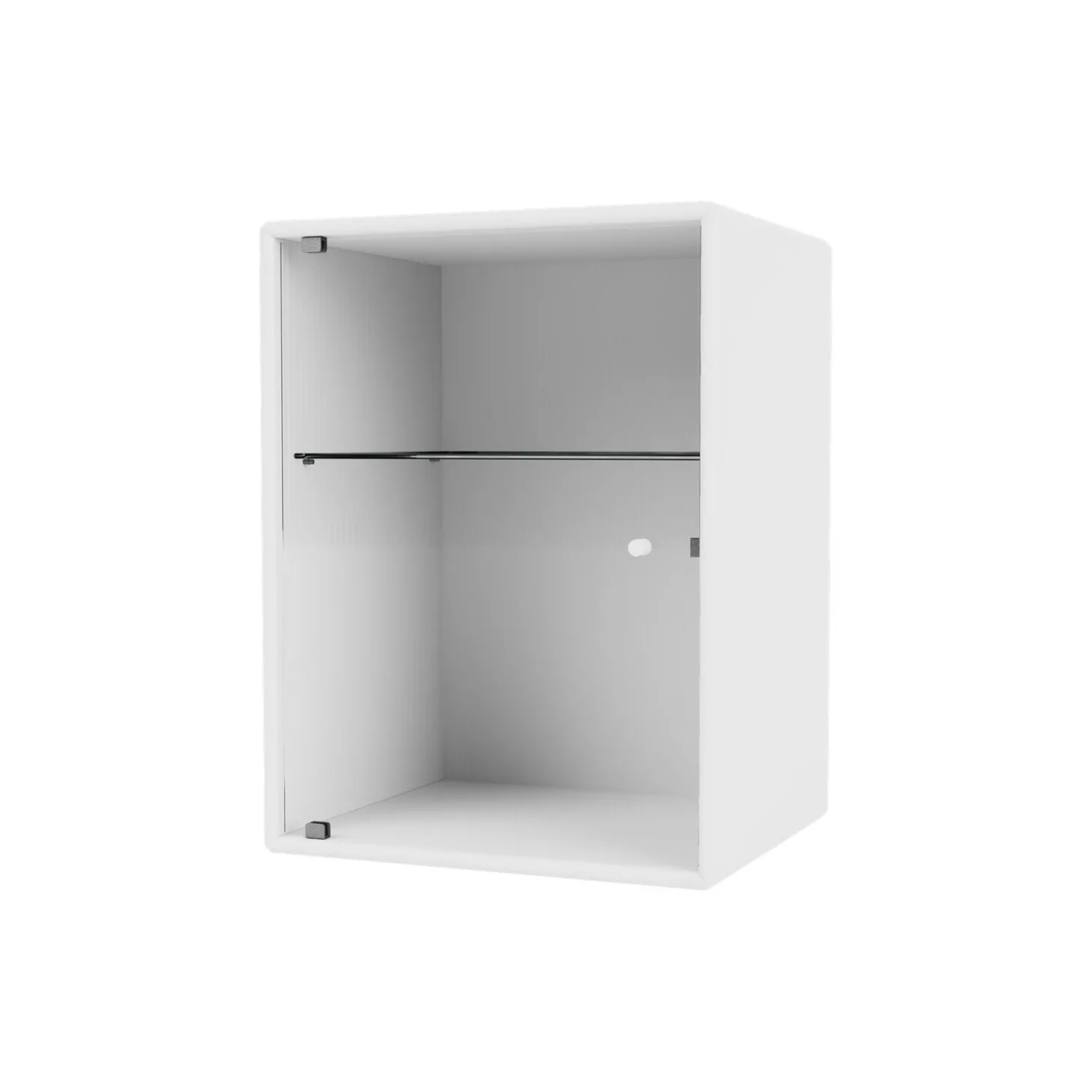 RIPPLE er et lille skab til badeværelset – perfekt til opbevaring af wellness- og skønhedsartikler. Skabet har en glaslåge i riflet glas og et lakeret greb. En glashylde er placeret indvendigt 18,3 cm fra toppen. RIPPLE fås kun med ophængsbeslag.