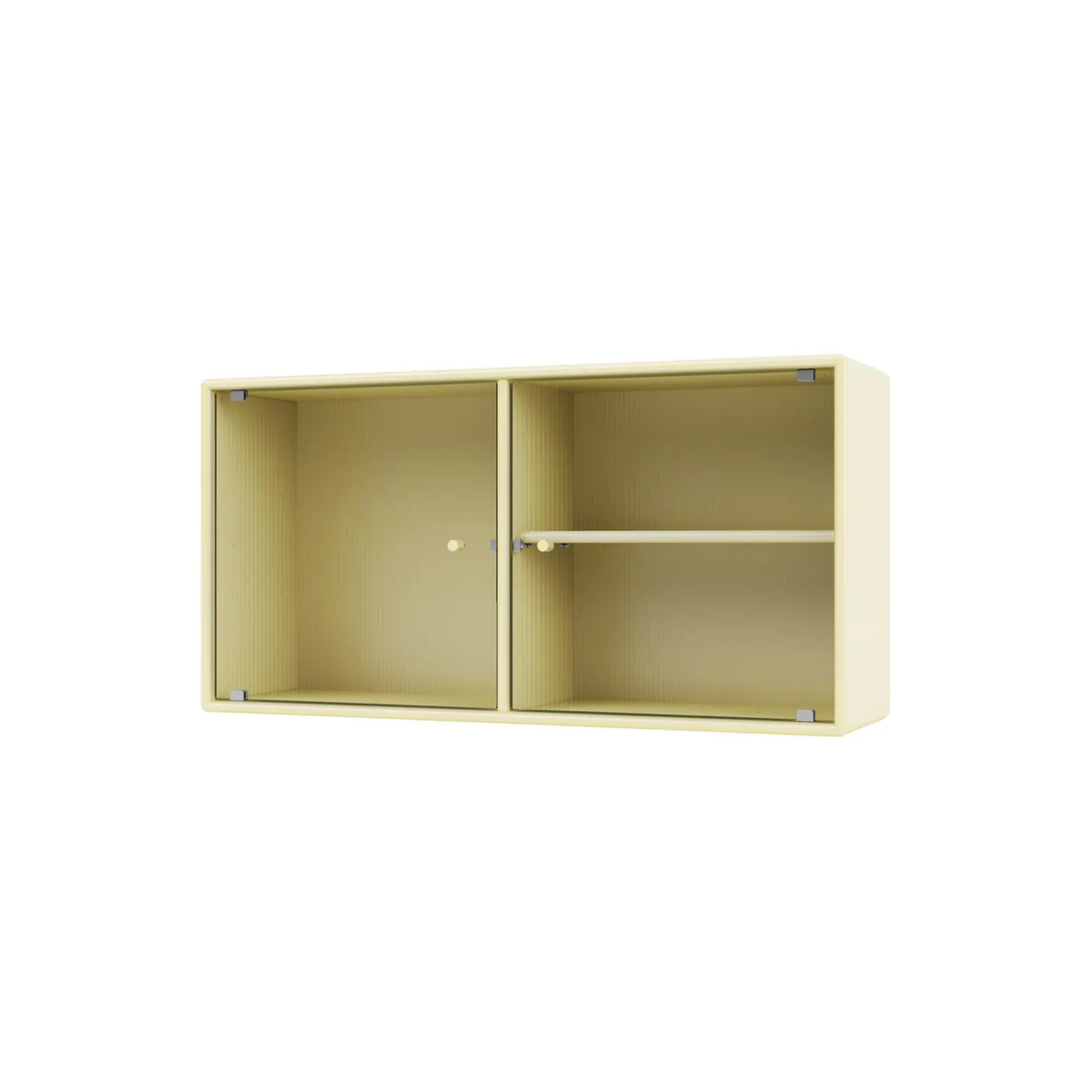 RIPPLE I er et væghængt vitrineskab med 2 låger i riflet glas. Skabet kan bruges som overskab i køkkenet, som et dekorativt skab i stuen eller spisestuen. Skabet har 1 flytbar hylde med bærere, som gør det lettere at arrangere og omarrangere hylden efter behov.