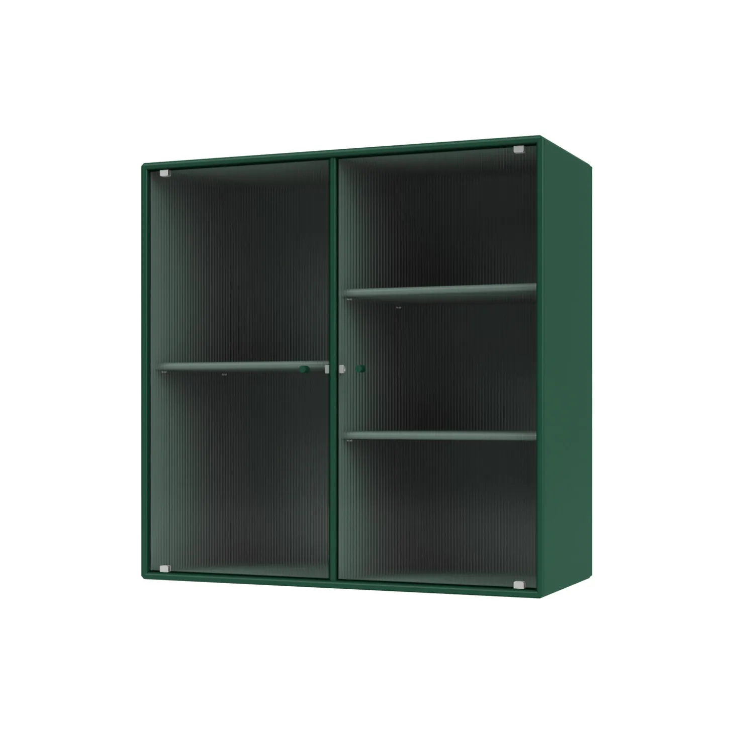 RIPPLE II er et vitrineskab med 2 låger i riflet glas. Skabet fås med ophængsbeslag, sokkel og ben. Det kan bruges som et overskab i køkkenet eller som et udstillingsmøbel i stuen eller spisestuen. Skabet har 3 flytbare hylder med bærere, som gør det lettere at arrangere og omarrangere hylderne efter behov.