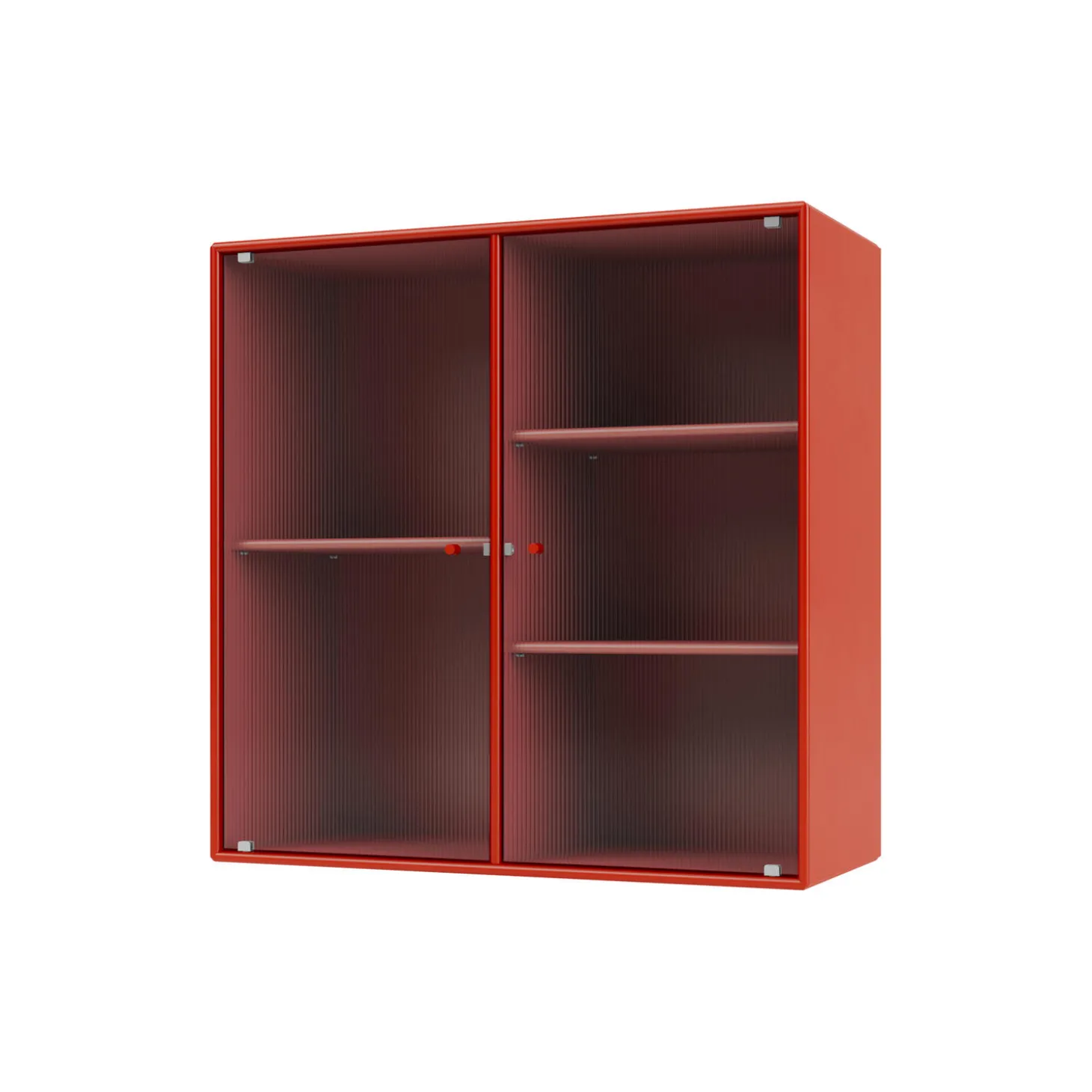 RIPPLE II er et vitrineskab med 2 låger i riflet glas. Skabet fås med ophængsbeslag, sokkel og ben. Det kan bruges som et overskab i køkkenet eller som et udstillingsmøbel i stuen eller spisestuen. Skabet har 3 flytbare hylder med bærere, som gør det lettere at arrangere og omarrangere hylderne efter behov.