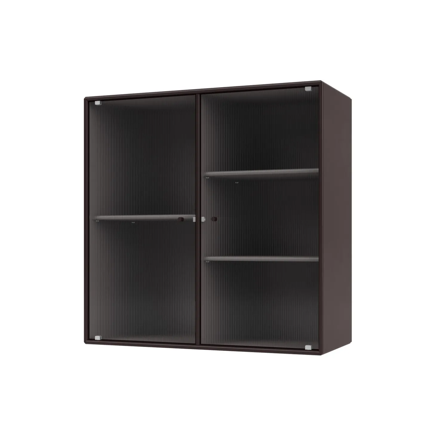 RIPPLE II er et vitrineskab med 2 låger i riflet glas. Skabet fås med ophængsbeslag, sokkel og ben. Det kan bruges som et overskab i køkkenet eller som et udstillingsmøbel i stuen eller spisestuen. Skabet har 3 flytbare hylder med bærere, som gør det lettere at arrangere og omarrangere hylderne efter behov.