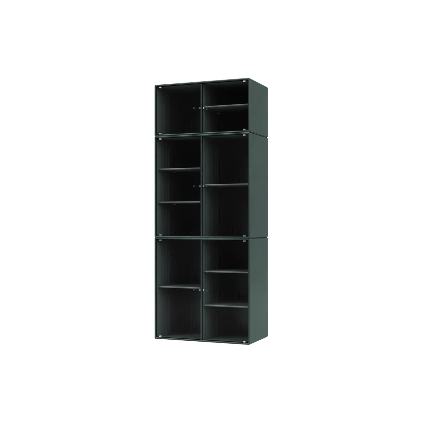 RIPPLE IV er et stort vitrineskab med 6 låger i riflet glas. Skabet er ideelt til opbevaring af service i spisestuen eller køkkenet. Det kan også rumme højere genstande som vaser. Skabet har 7 flytbare hylder med bærere, som gør det lettere at arrangere og omarrangere hylder efter behov.