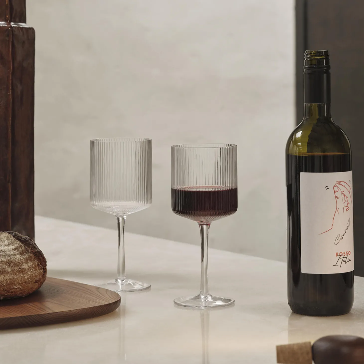 De mundblæste Ripple Rødvinsglas er fremstillet med omhyggelig præcision og repræsenterer den elskede Ripple families tidløse elegance. Disse glas er designet til at gøre din oplevelse endnu bedre, når du drikker vin og de udstråler raffinement og karakter, som løfter din borddækning. Med det ikoniske krusede design forener disse glas med stilk problemfrit alsidighed med tidløs elegance.