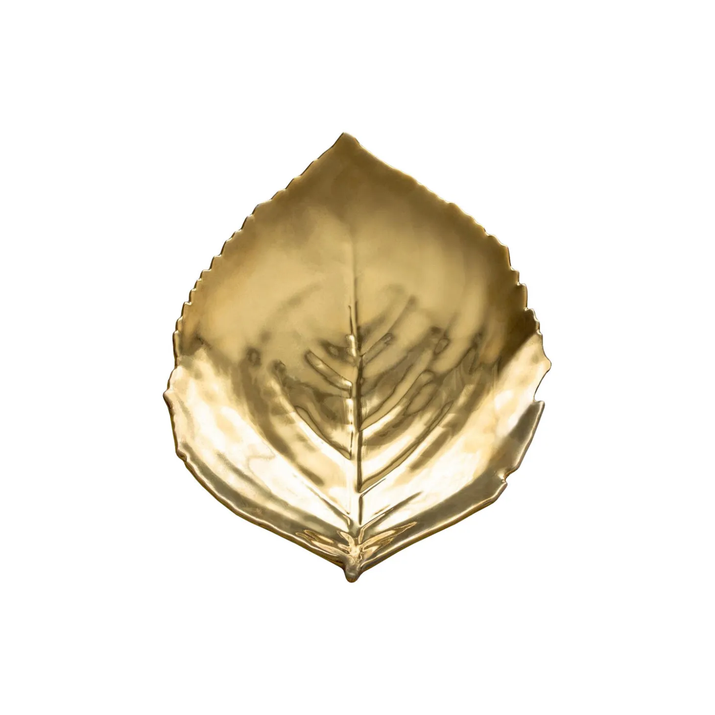 Riviera tallerken hortensiablad i keramik fra Costa Nova. Farve: gylden. Mål: 22×19 cm.