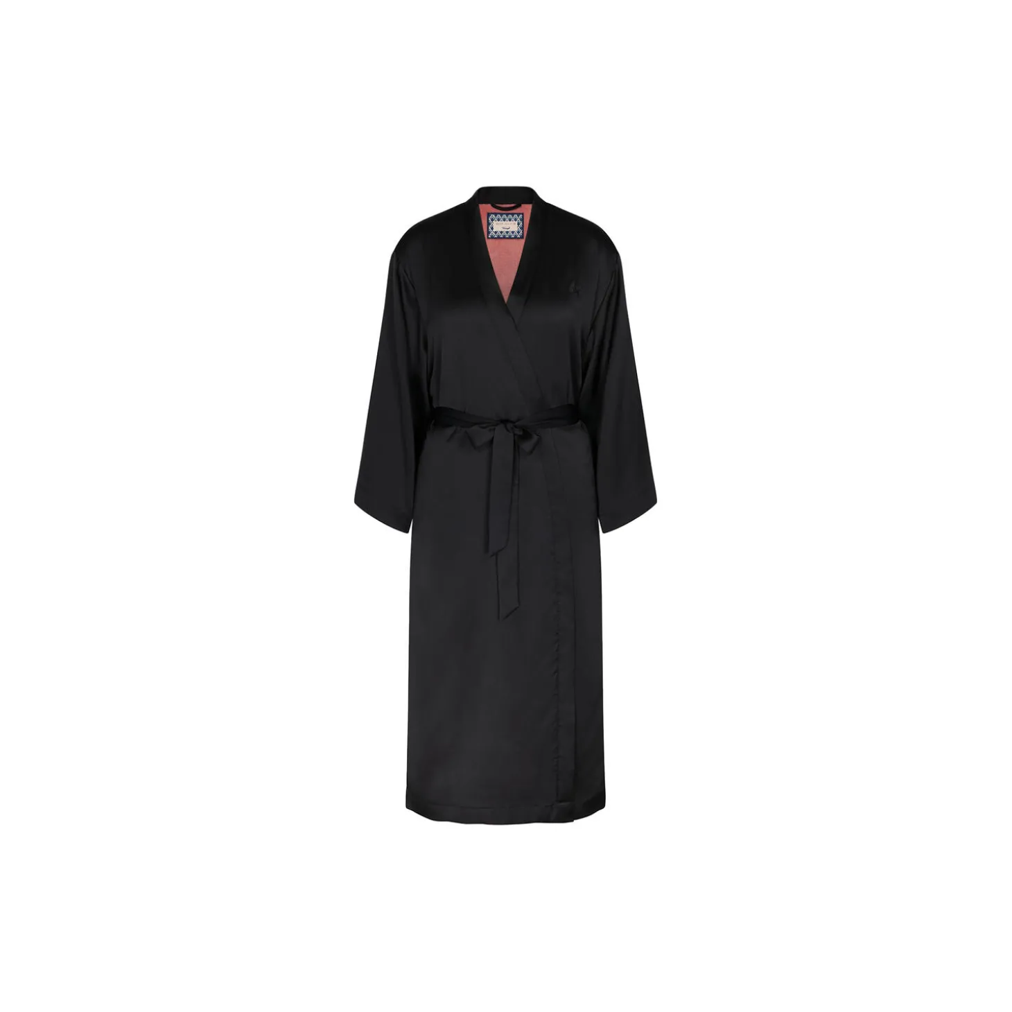 Med denne luksuriøst bløde satin-kimono vil du føle dig smart og afslappet hele vinteren. Den raffinerede fleeceforing giver den perfekte balance mellem varme og komfort. Designet med et glat bælte af satin, som er nemt at binde, og lommer i sidesømmene.