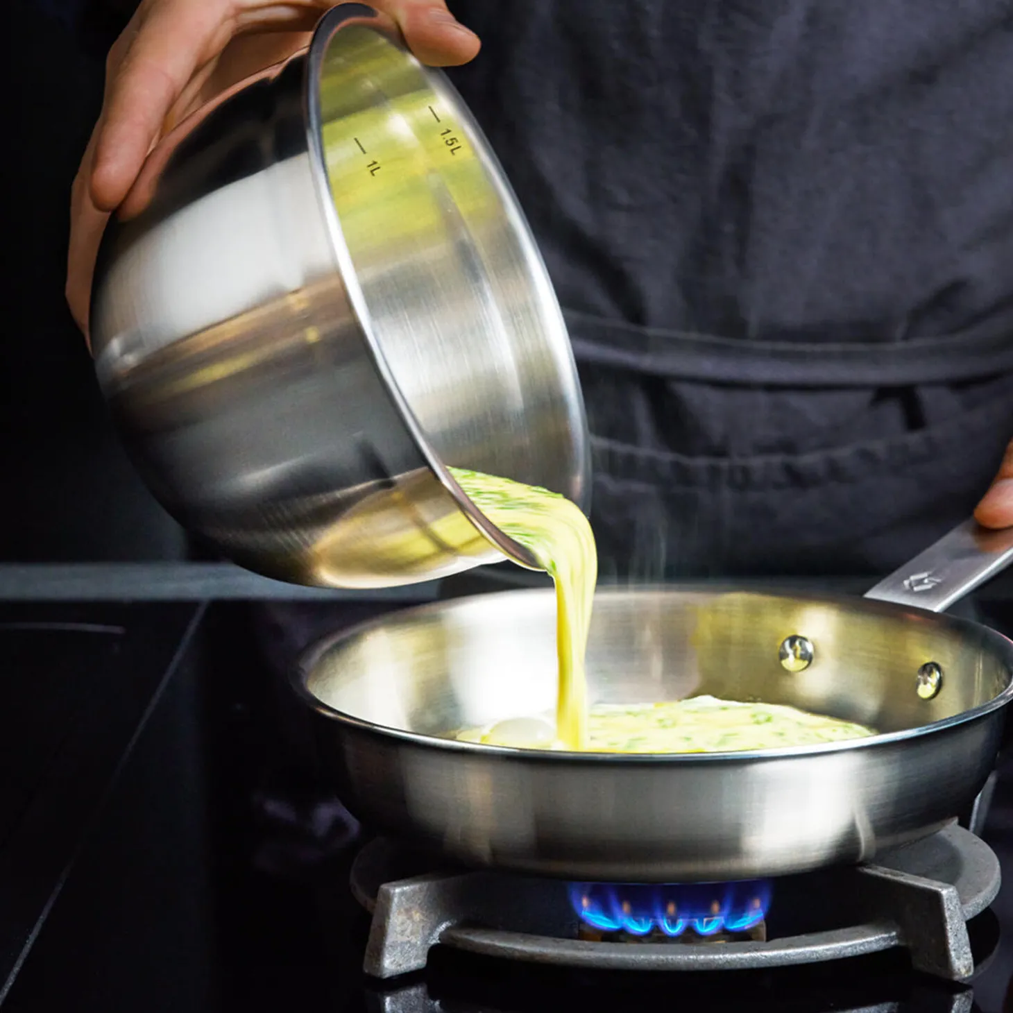 Med sættet får du tre robuste skåle med hældekant, der gør det let at håndtere alt fra de små forberedelser til de store køkkenprojekter. Det er et komplet sæt i rustfrit stål af høj kvalitet, så skålene er ekstra modstandsdygtige og kan bruges til både varme og kolde opgaver, uden at påvirke røreskålenes funktionalitet. Få glæde af de alsidige størrelser, der opfylder alle behov i køkkenet. Alle skålene er lette at rengøre og tåler opvaskemaskine, hvilket gør dem utroligt praktiske i en travl hverdag. Desuden er skålene stabelbare, så de fylder minimalt i køkkenskabet, når de ikke er i brug. Deres elegante og enkle design passer ind i ethvert køkken, uanset om du skal røre, ælte, opbevare eller servere.